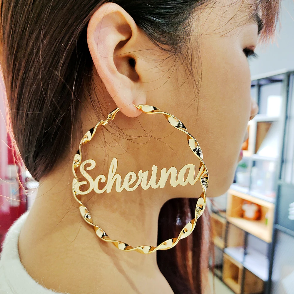 Большие серьги-кольца на заказ, пикантные витые серьги-кольца с именем s под заказ, с эффектными словами, в стиле хип-хоп, 2020