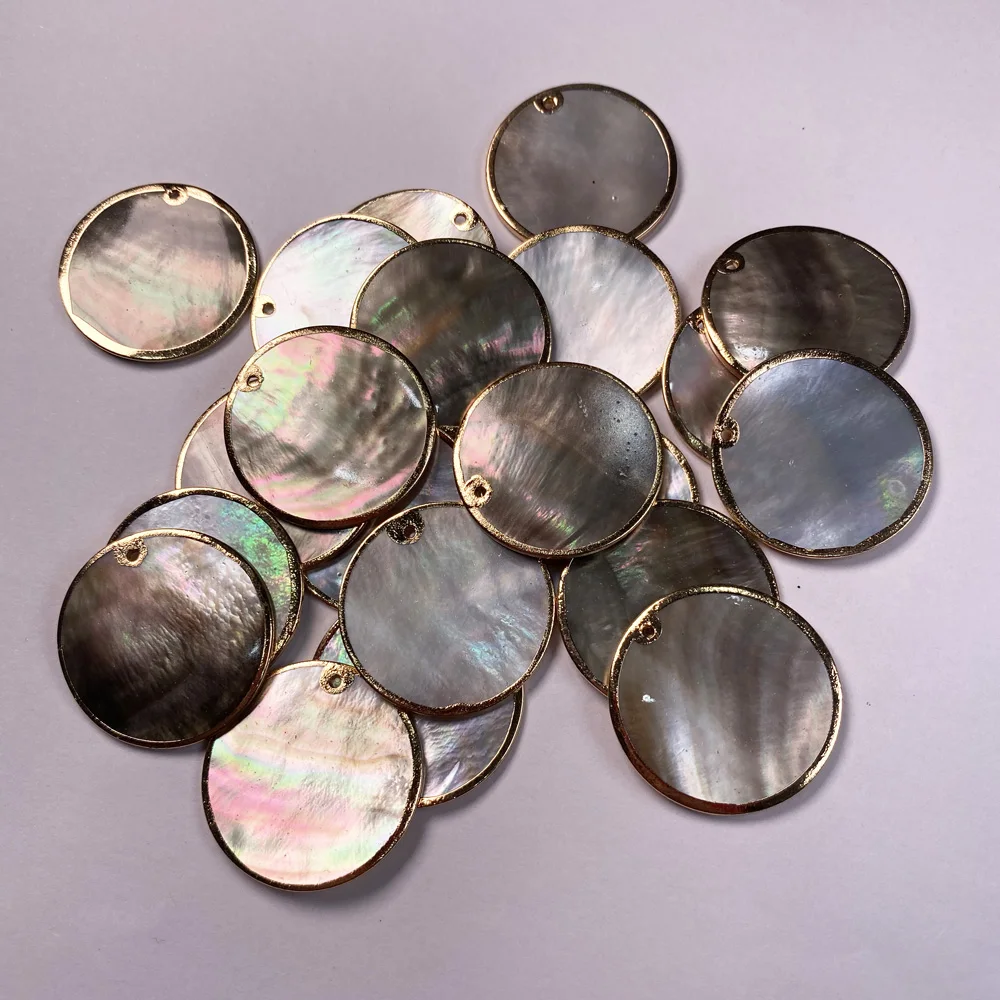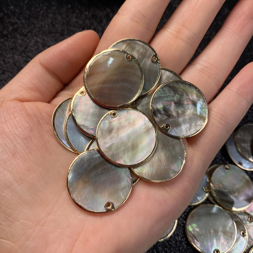 Натуральная зеркальная ракушка, золотистая круглая подвеска в виде ...