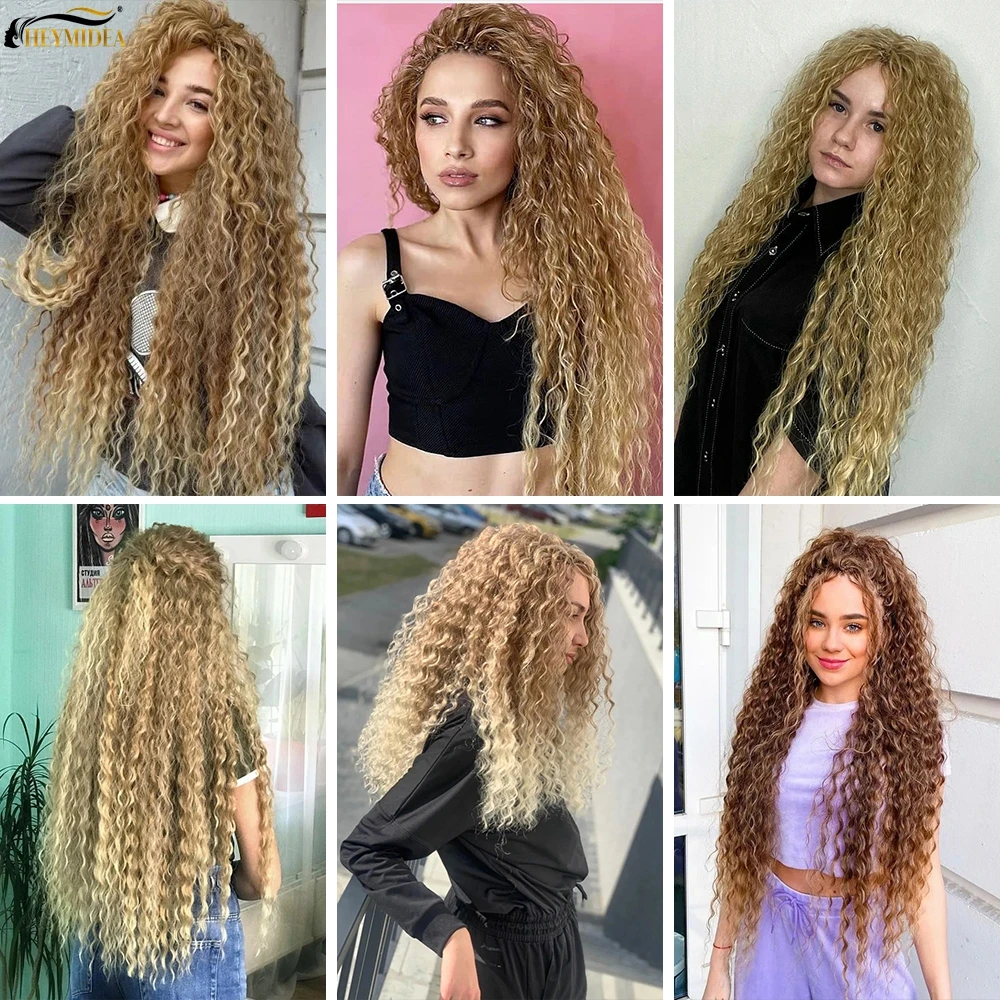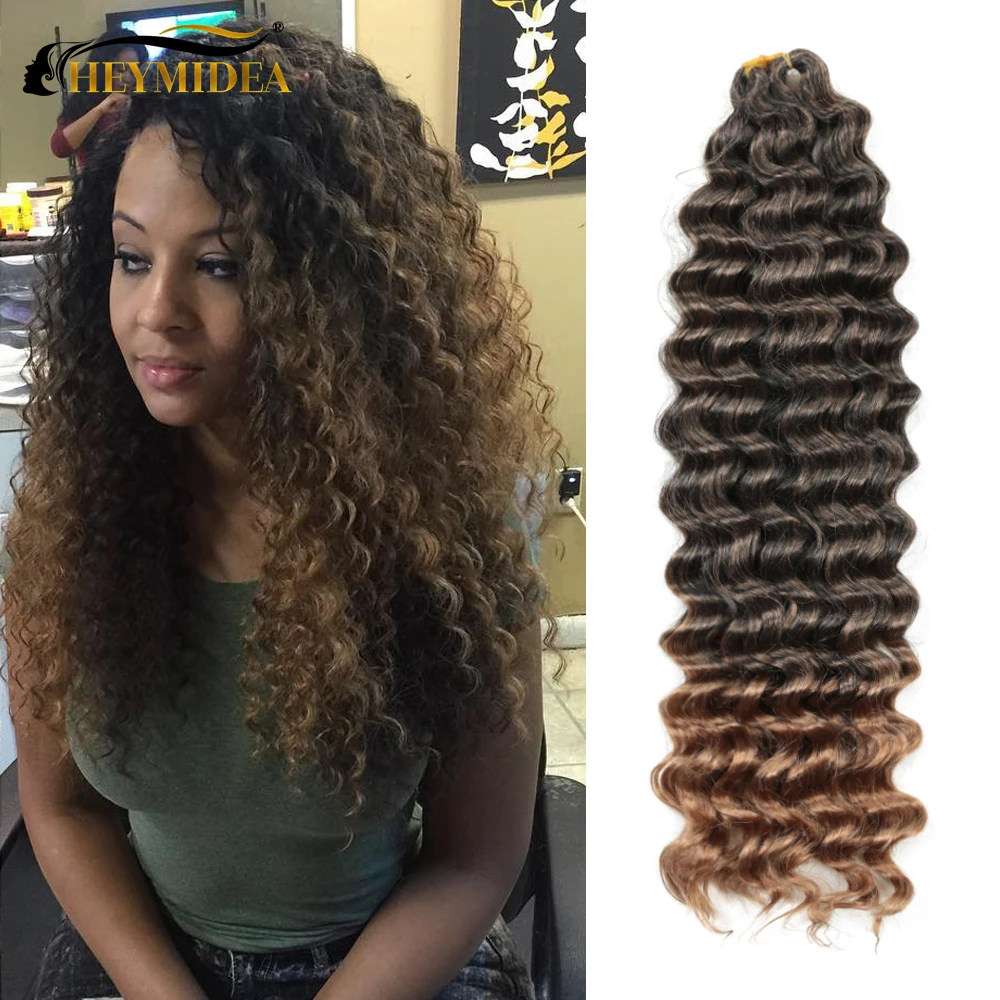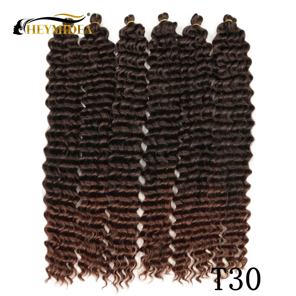 28-дюймовые синтетические глубокие волнистые плетеные волосы кроше для наращивания натуральные вязаные крючком косы цвета Омбре искусственные мешки с вьющимися волосами HeyMidea