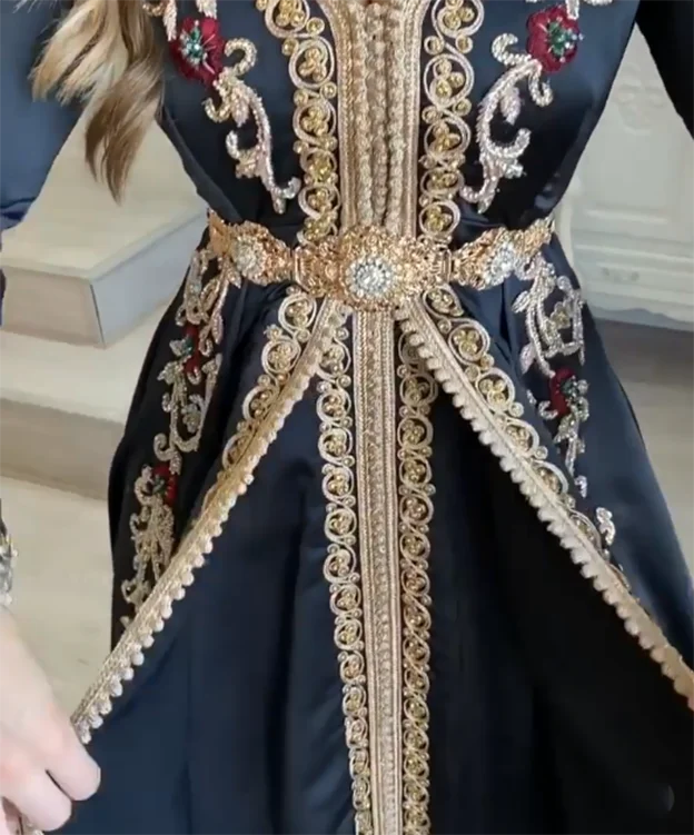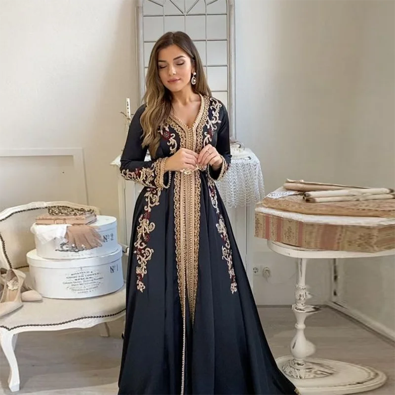 Высокое качество кружевное платье с аппликацией и длинными рукавами марокканский кафтан вечернее платье Вечерние бисером, кристаллами Дубай ювелирные изделия из торжественное платье для выпускного вечера
