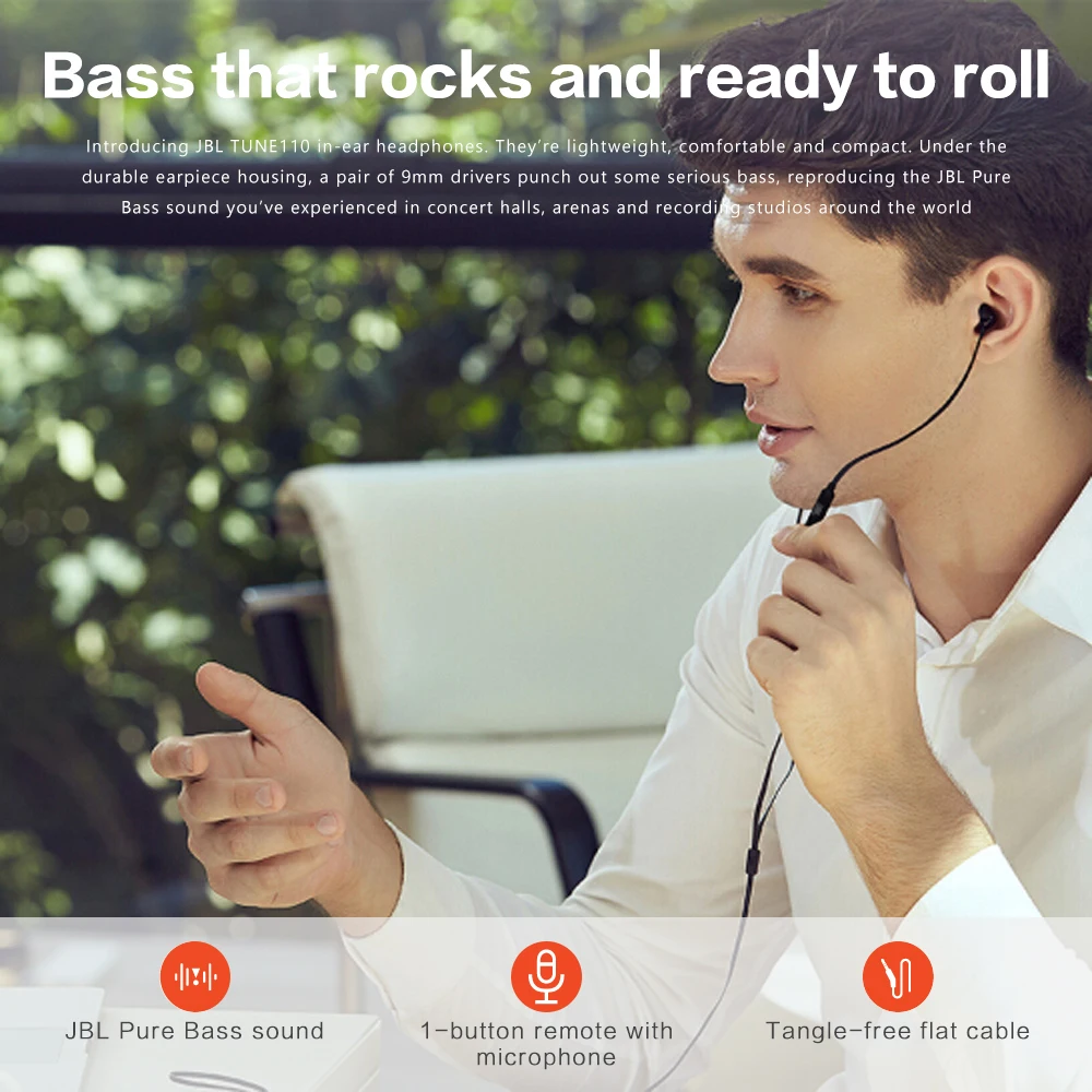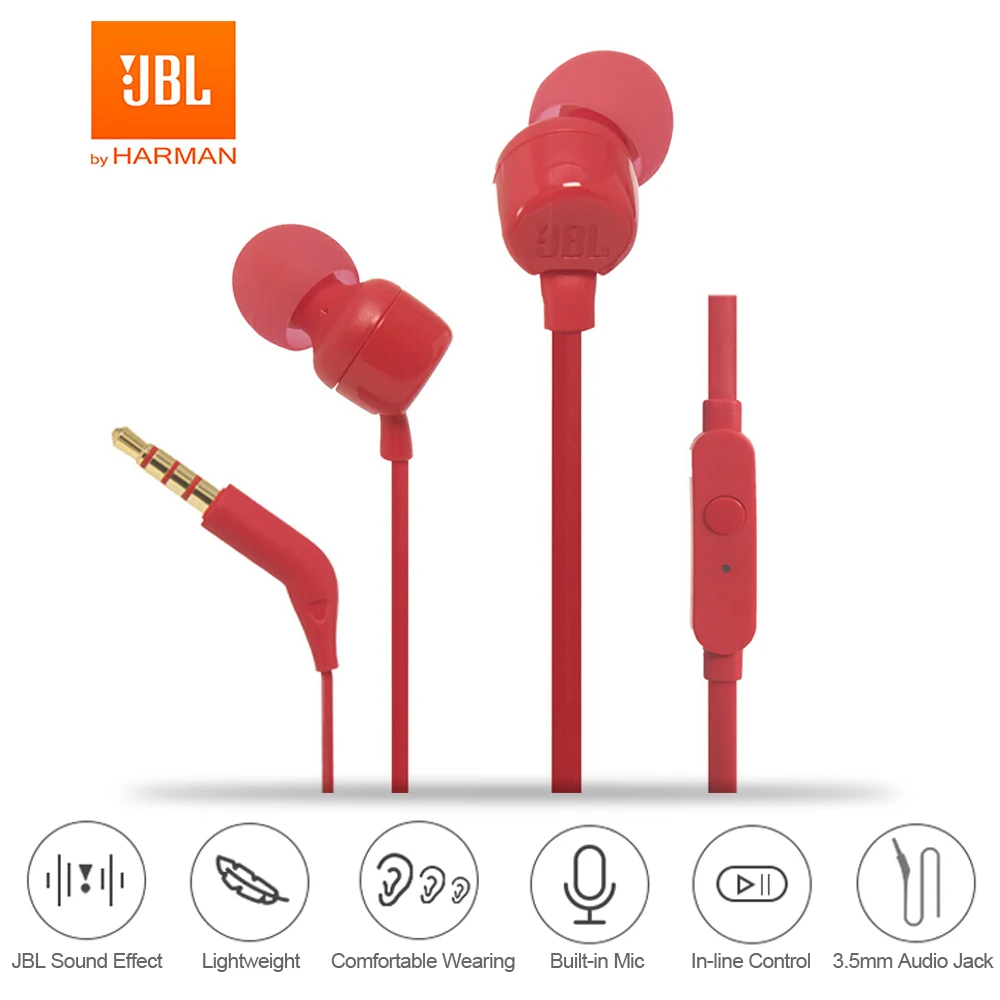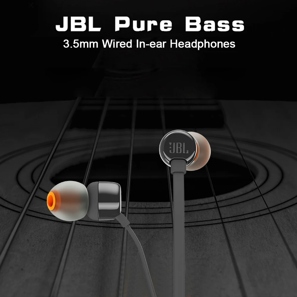 Проводные стереонаушники JBL T110, наушники с тяжелыми басами и штекером 3,5 мм, с проводным управлением, с микрофоном, гарнитура