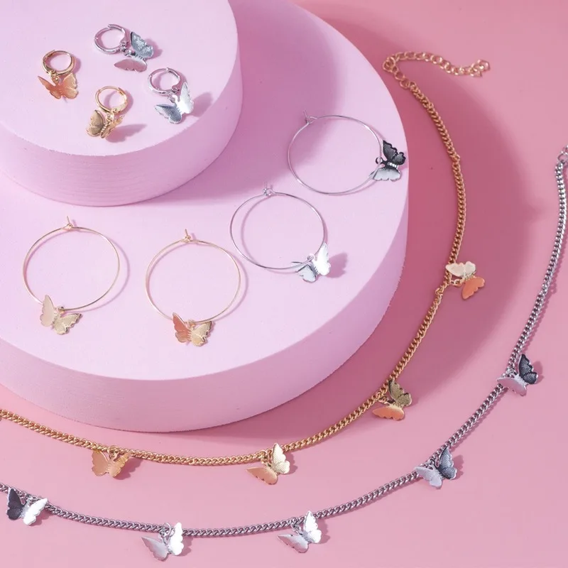 Оптовая продажа, Лидер продаж, простой ассортимент подвесок, серьги-бабочки, ожерелье, набор цепочек до ключиц, летние аксессуары