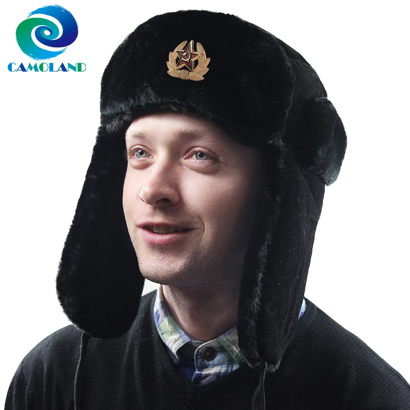 CAMOLAND Лидер продаж советский значок России шапка ушанка, шапки для мужчин и женщин Термальность Бомбер с рукавами из искусственного меха зимняя шапка ушанка лыжный Кепки