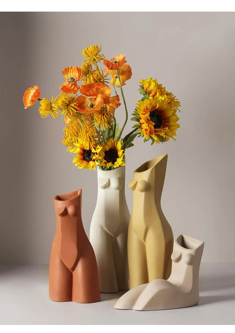 Morandi Цветная Керамическая ваза, Женская Цветочная ваза для тела, цветочная корзина, украшение для дома, скандинавский декор, сушеный цветочный контейнер, модная