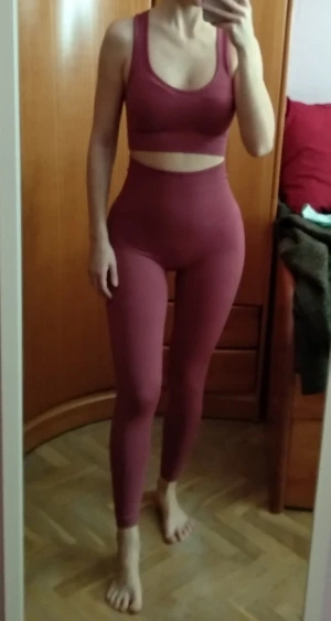 Комплект просто супер.Отлично смотрится,ткань хорошая,тянется.Цвет немного отличается,он темнее,скорее цвет баклажан.На удивление,в нем не жарко.На рост 178,вес 68,взяла размер L.Идеально подошло.Заказала себе ещё комплект в другом цвете.