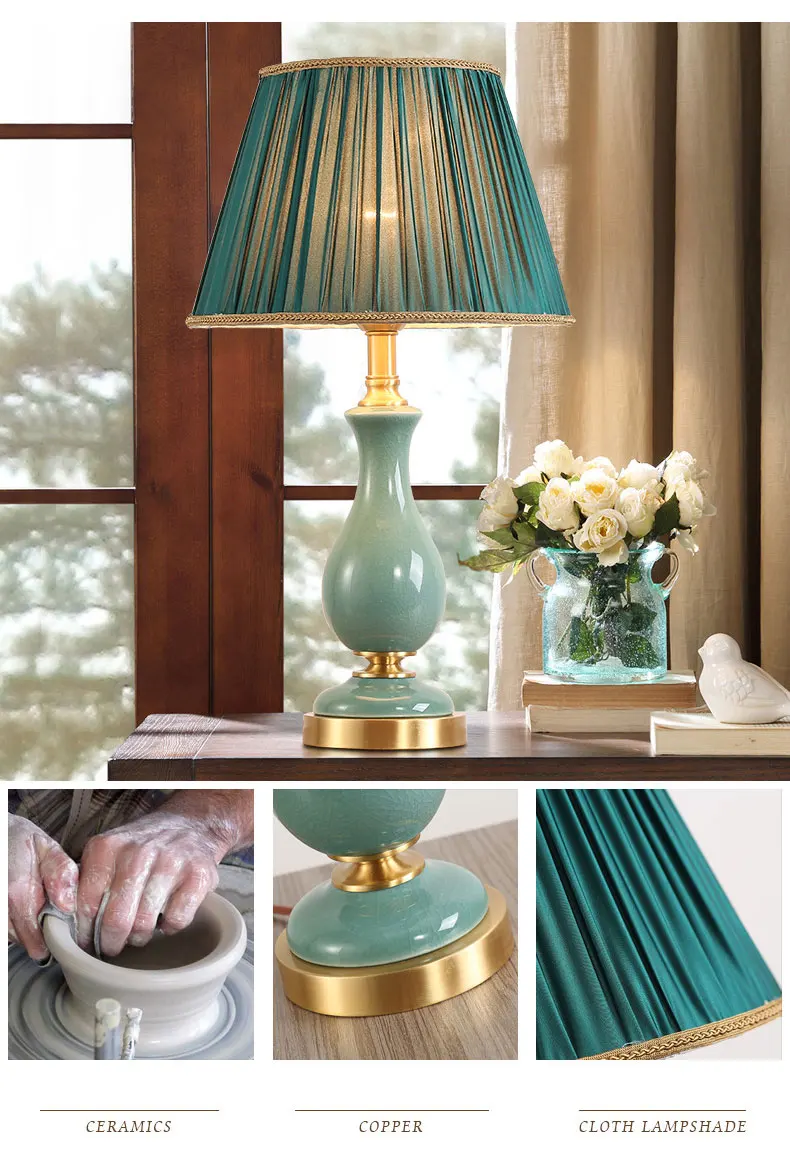 Европейский Зеленый телефон, простой классический Декор, Керамический Китайский светодиодный светильник E27 для кабинета, спальни, гостиной, настольное освещение