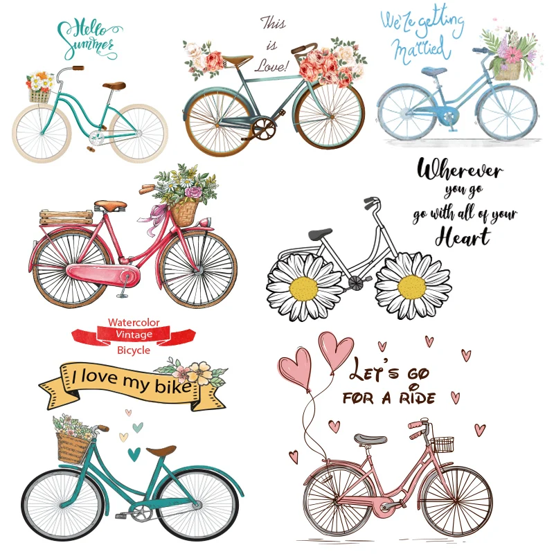 Аппликация для одежды, милая и свежая декоративная аппликация на одежду с изображением велосипеда, маргаритки, цветов