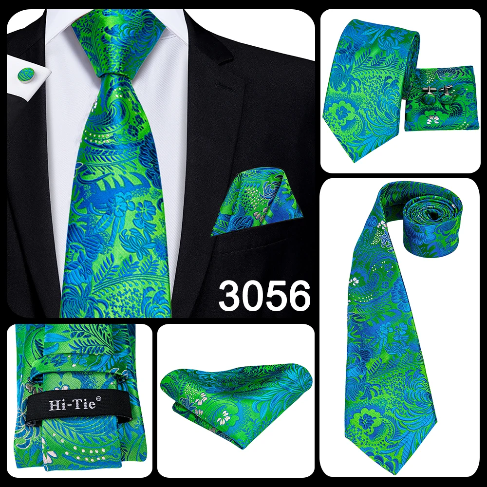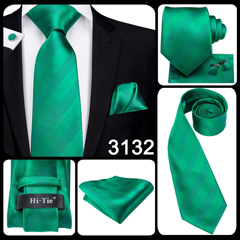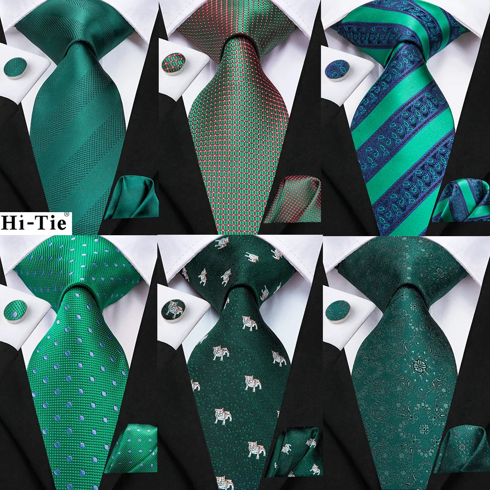 Hi-Tie Мужской подарочный набор галстука зеленый однотонный полосатый Шелковый Свадебный галстук для мужчин модный дизайнерский качественный галстук набор запонок Прямая поставка