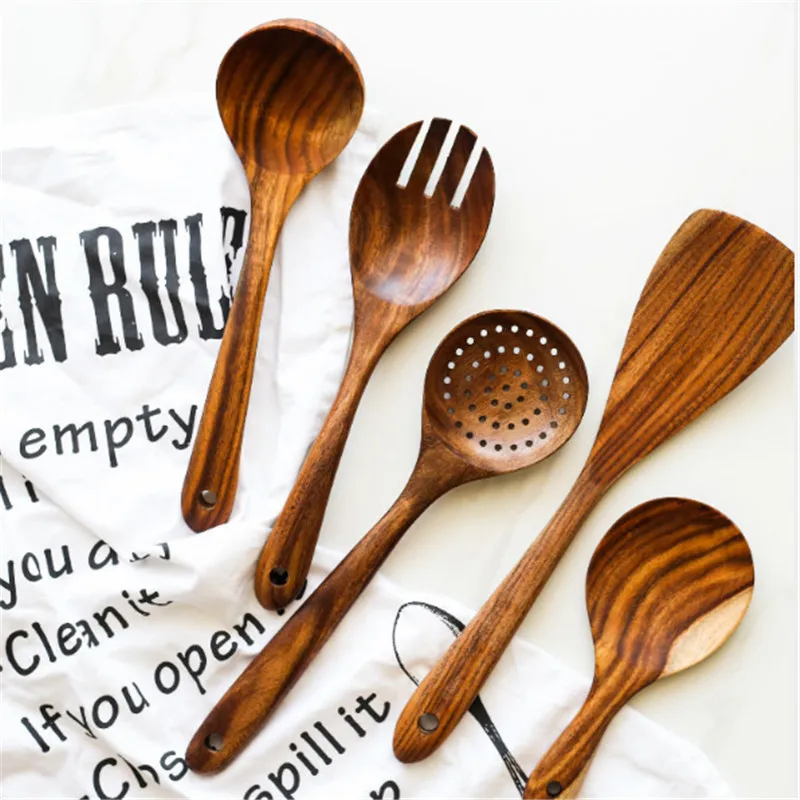 Набор деревянных кухонных принадлежностей, ложка, дуршлаг для риса, половник-дуршлаг лопатка черпак, термостойкая Антипригарная посуда