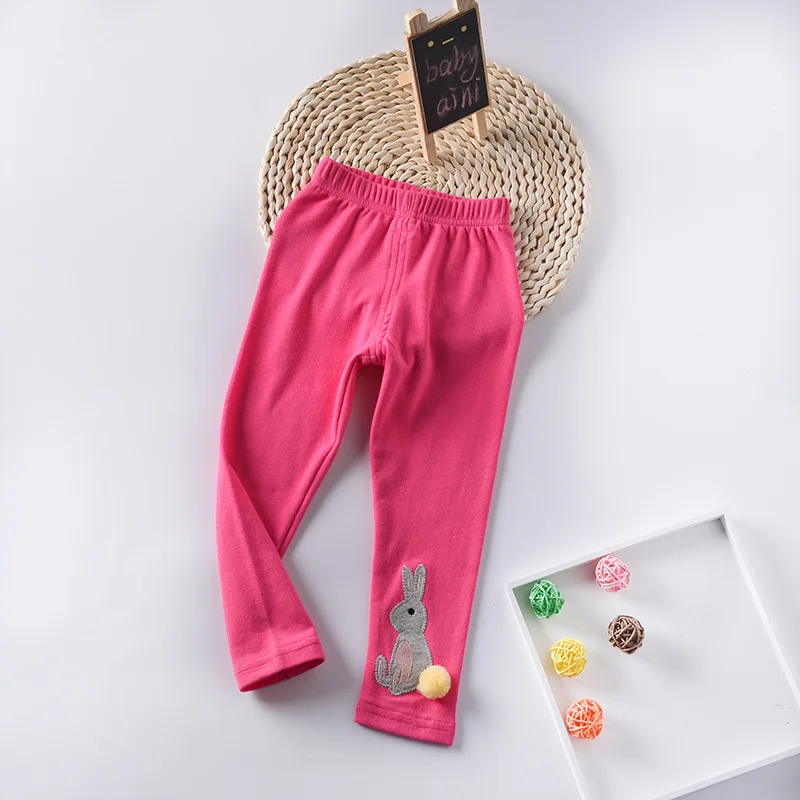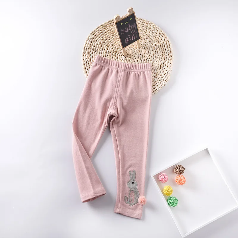 Осень-зима 2021, штаны с вышивкой в виде кролика для девочек, детские леггинсы с украшением в виде шара, теплые брюки в Корейском стиле