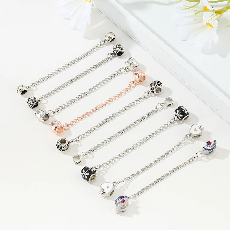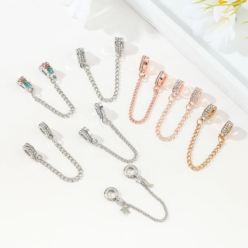 Серебряный цвет паве вдохновение звезда цепь безопасности прозрачный CZ стопор шармы подходят браслеты Браслеты DIY Бисер для женщин ювелирные изделия