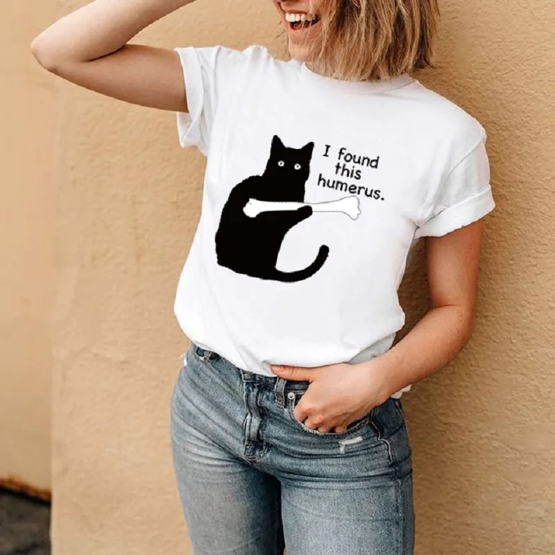 Футболка женская с забавным принтом кошки, милая рубашка с коротким...
