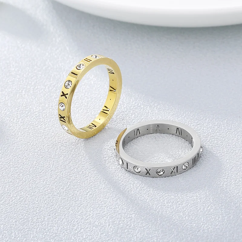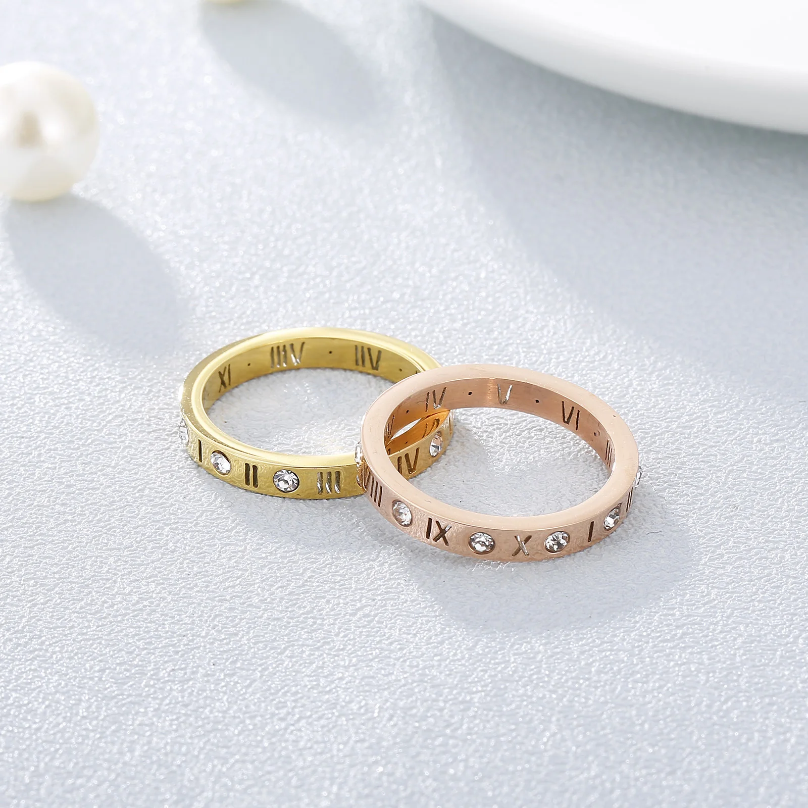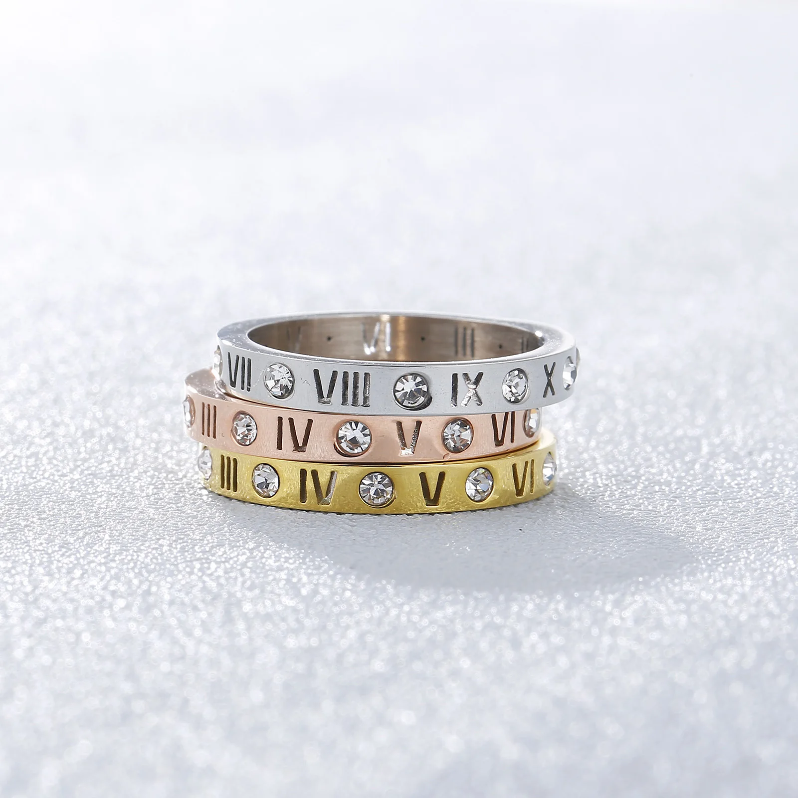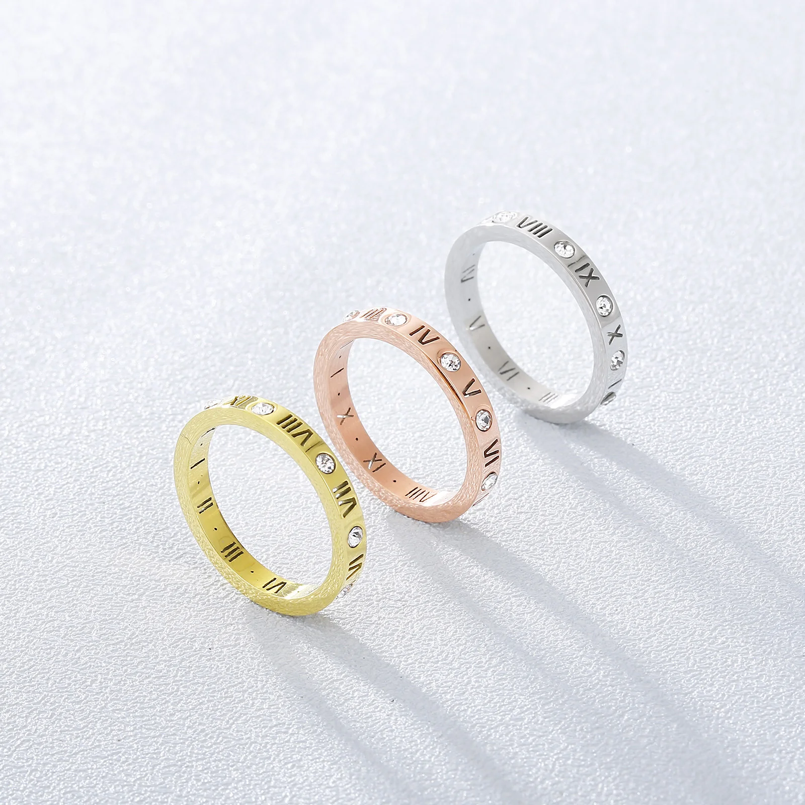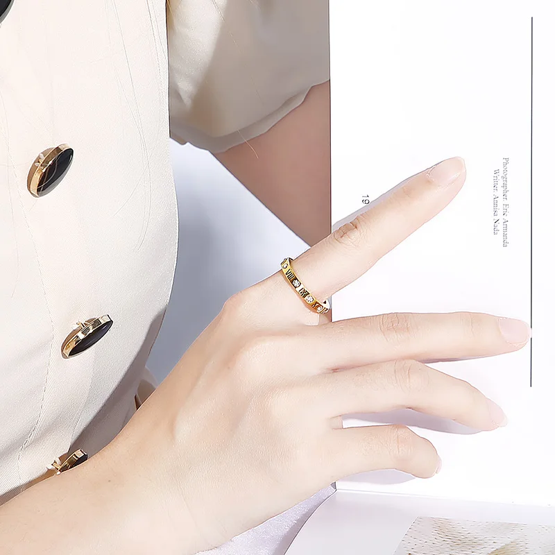 Модные украшения элегантный темперамент полые lucky римскими цифрами покрытие с ионным напылением из розового золота titanium стальное кольцо