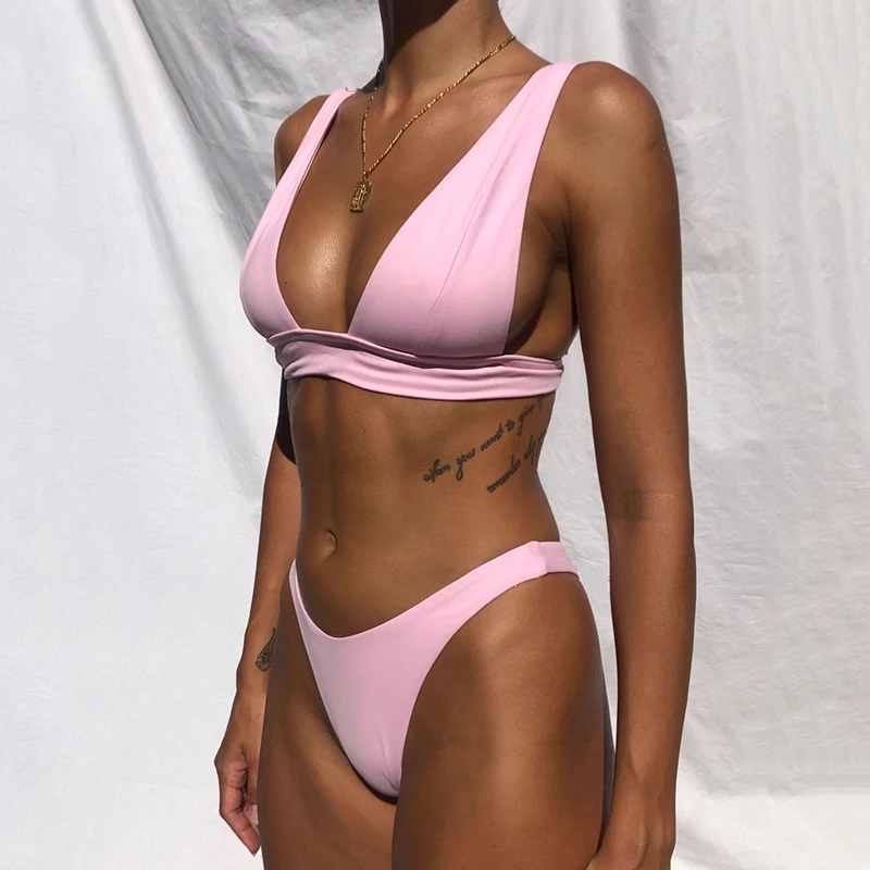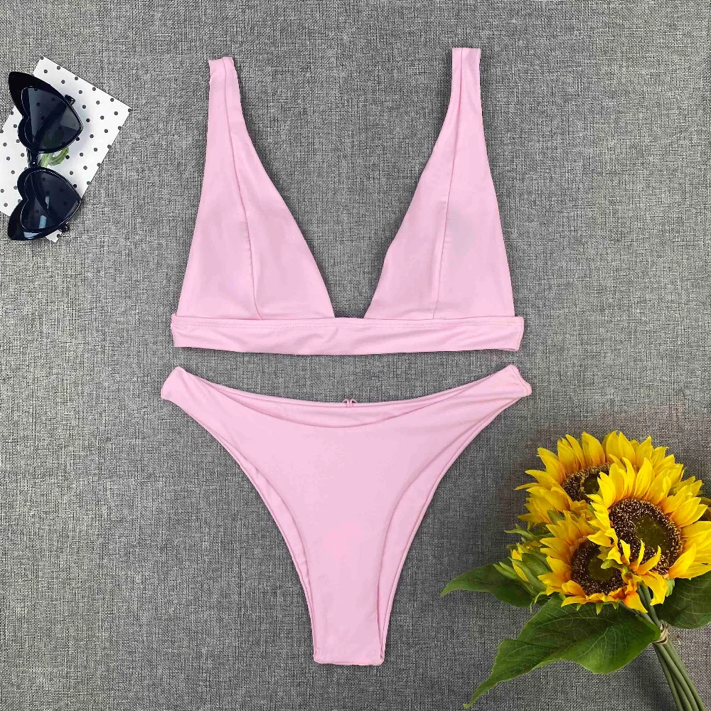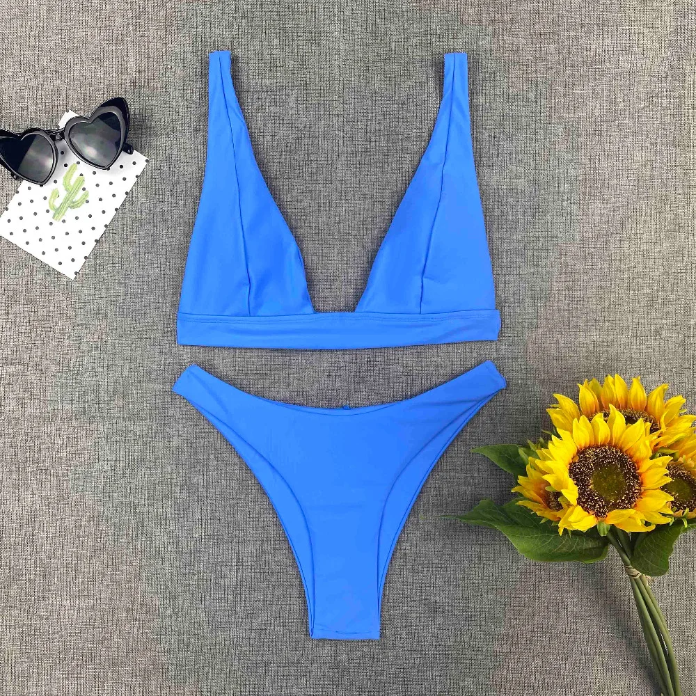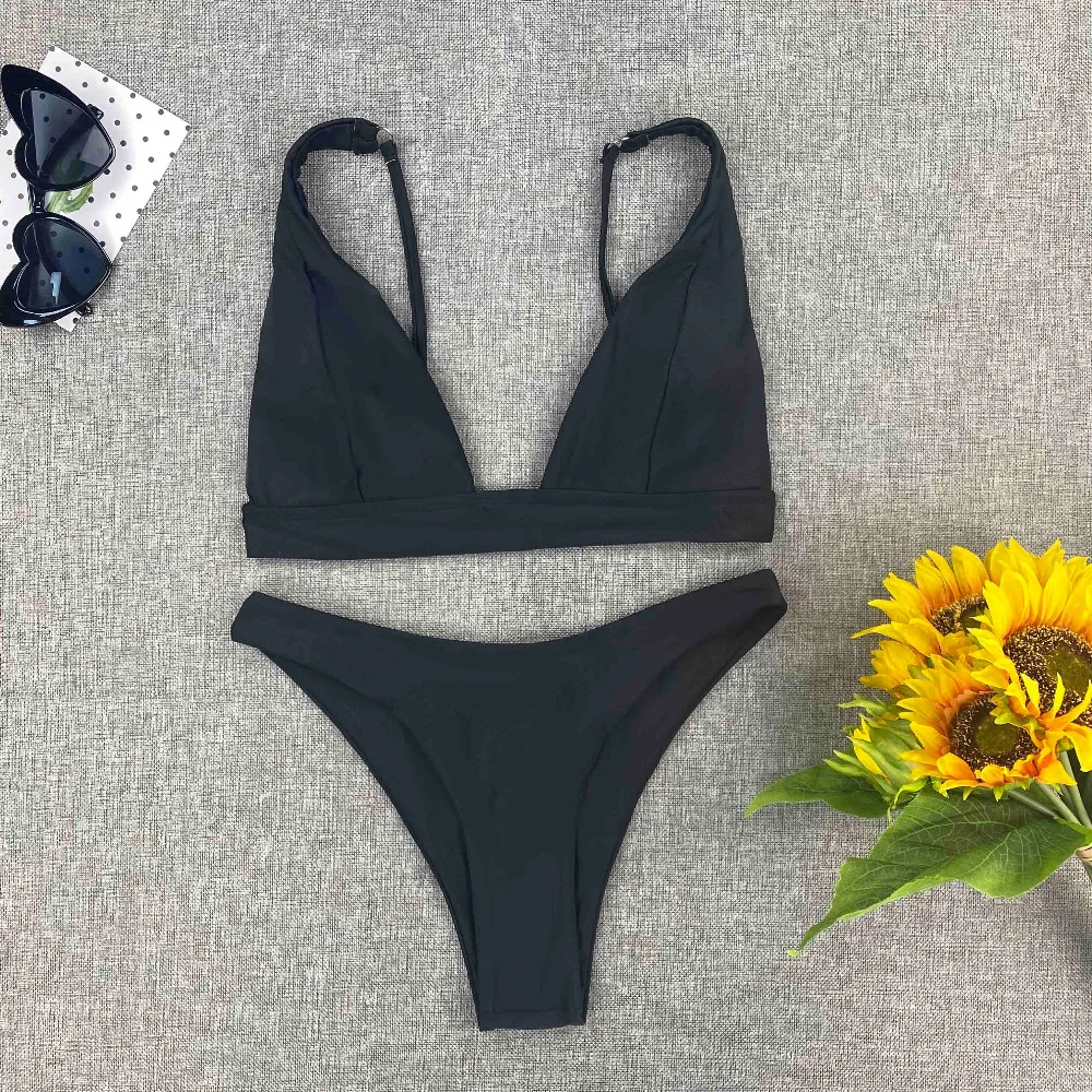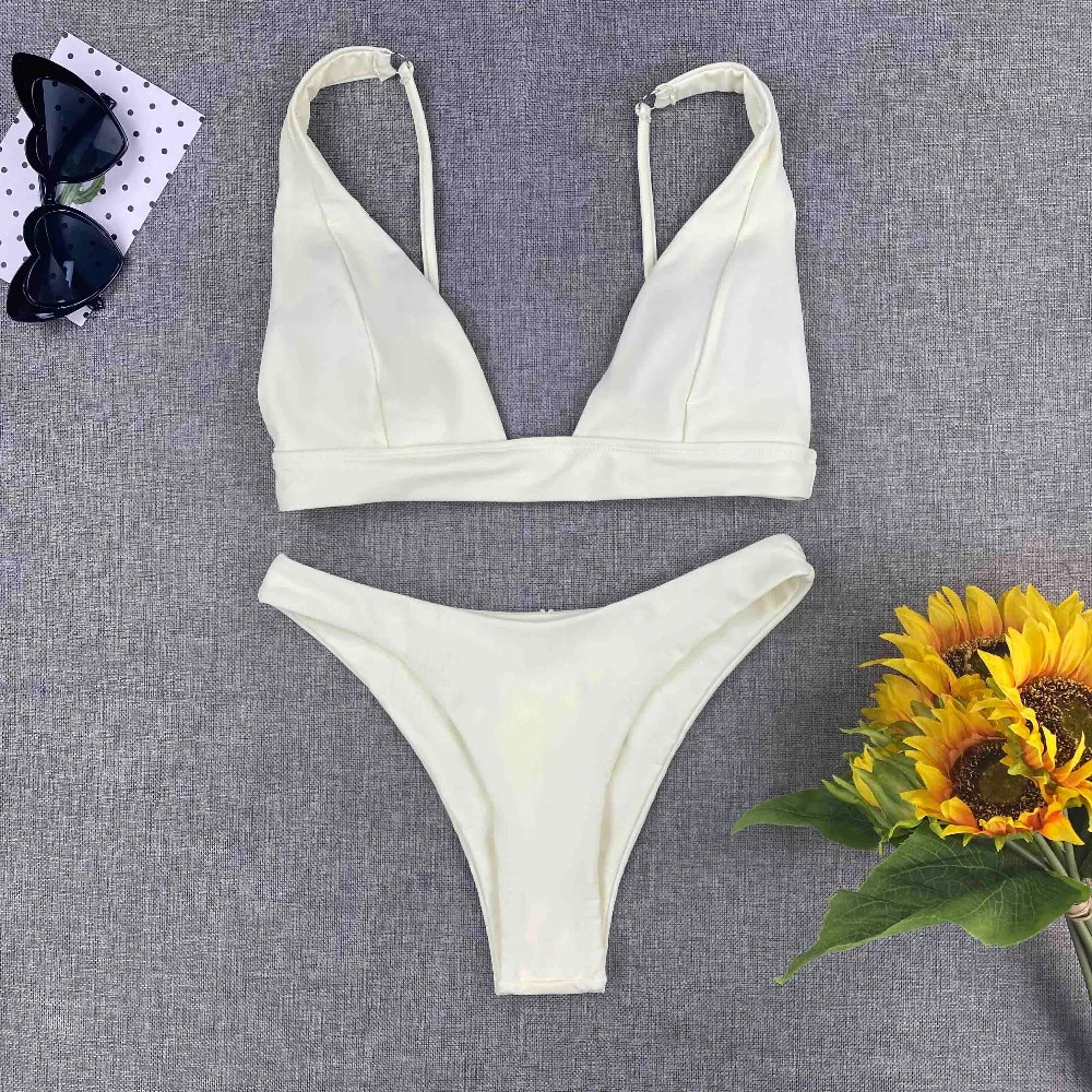 Бикини 2021, сексуальный купальник для женщин, пуш-ап, купальник с высокой талией, однотонный бикини, женский купальный костюм, летняя пляжная одежда, купальный костюм