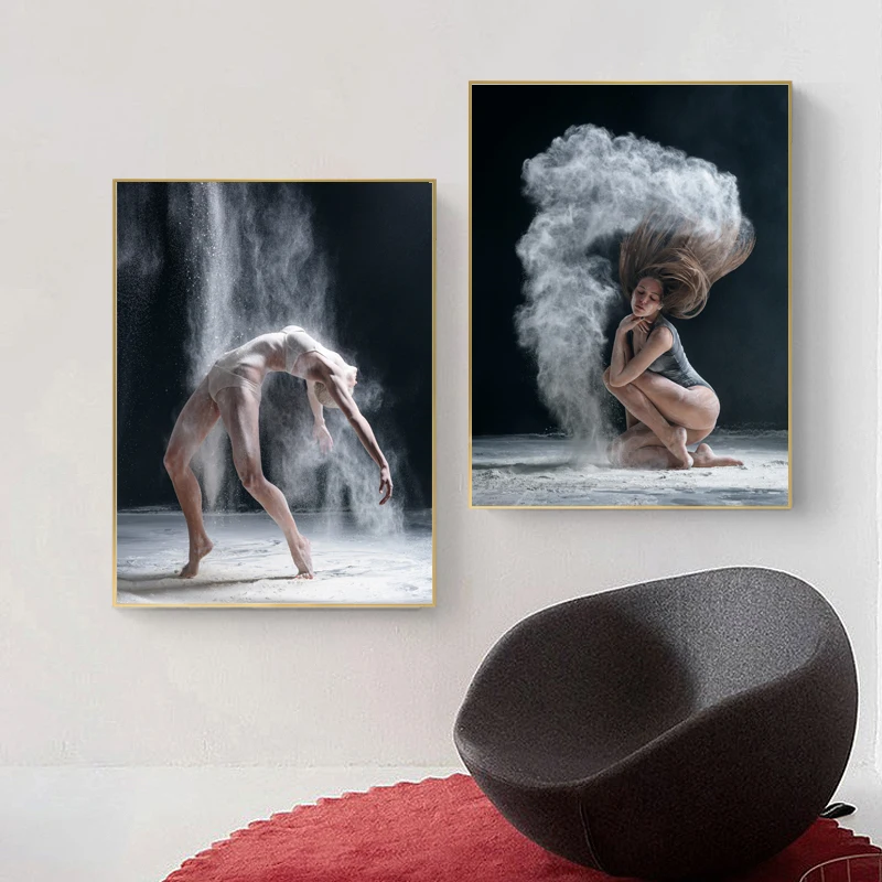 Элегантный плакат с белой пудрой и танцующей девушкой, настенное ис...