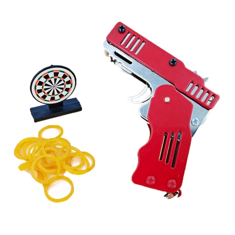 Цинковый сплав красочный металлический мини можно сложить как брелок пистолет с резиновой лентой детский подарок игрушка шесть разрывов резинового Игрушечного Пистолета