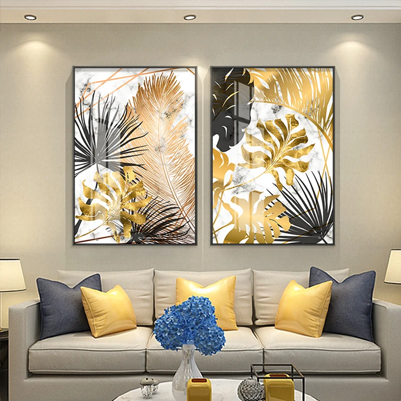 Скандинавские растения Золотой лист холст картины плакаты под мрамо...