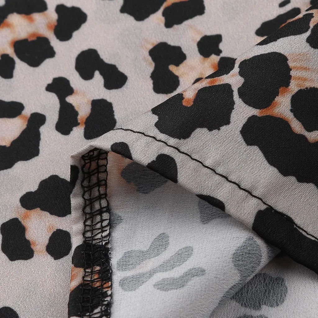 Женское Платье с леопардовым принтом, с длинным рукавом и V-образным вырезом