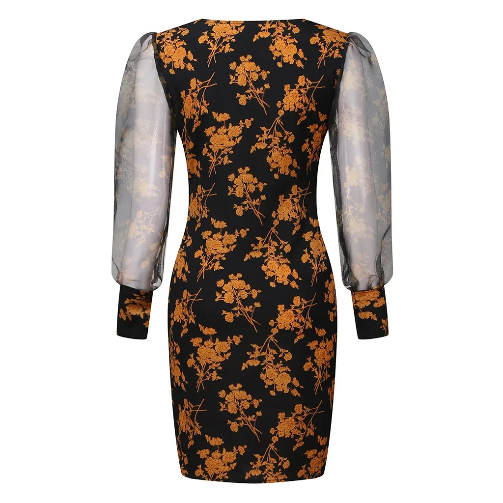 Женское праздничное мини-платье с длинным рукавом и V-образным вырезом