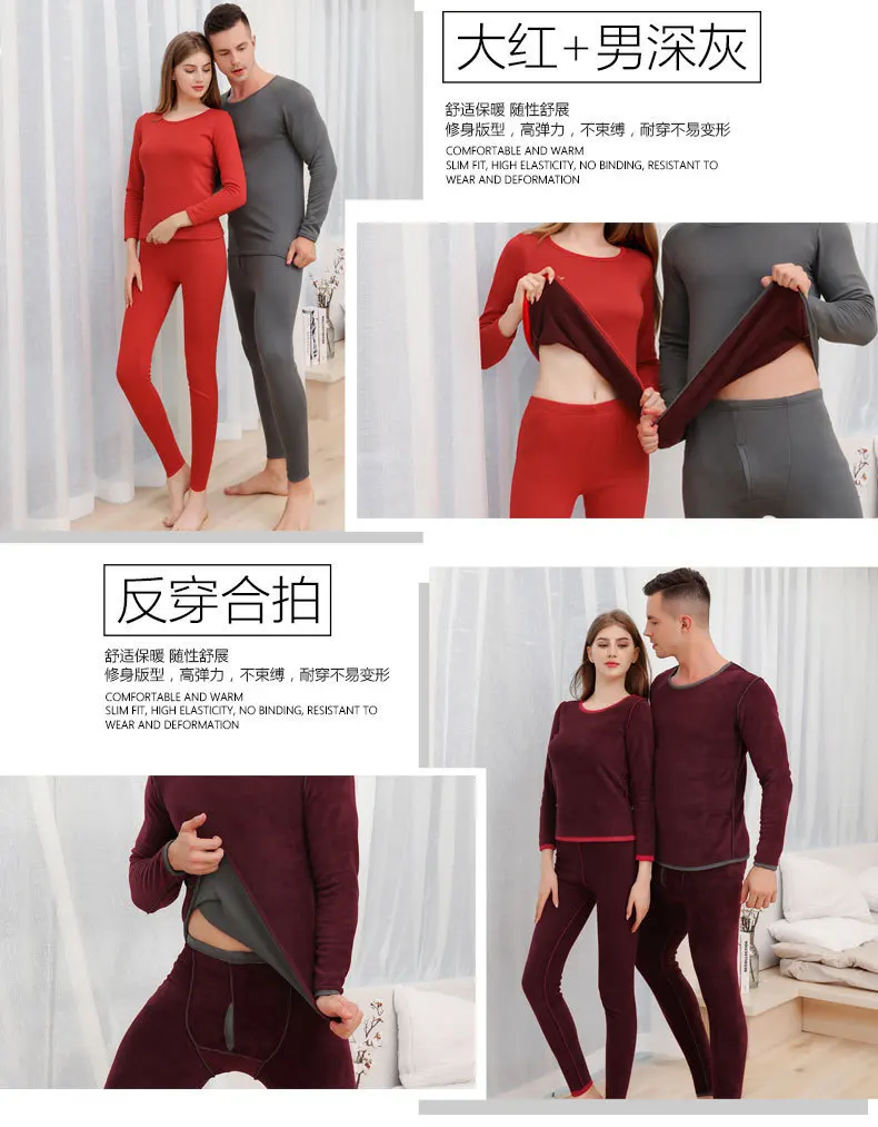 2019 утолщенные бархатные зимние комплекты термобелья для женщинмужчин, зимние теплые кальсоны для влюбленных, термокостюм