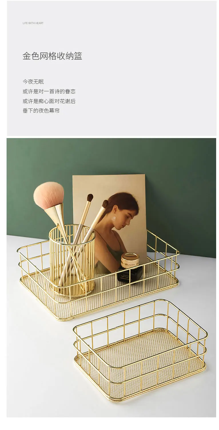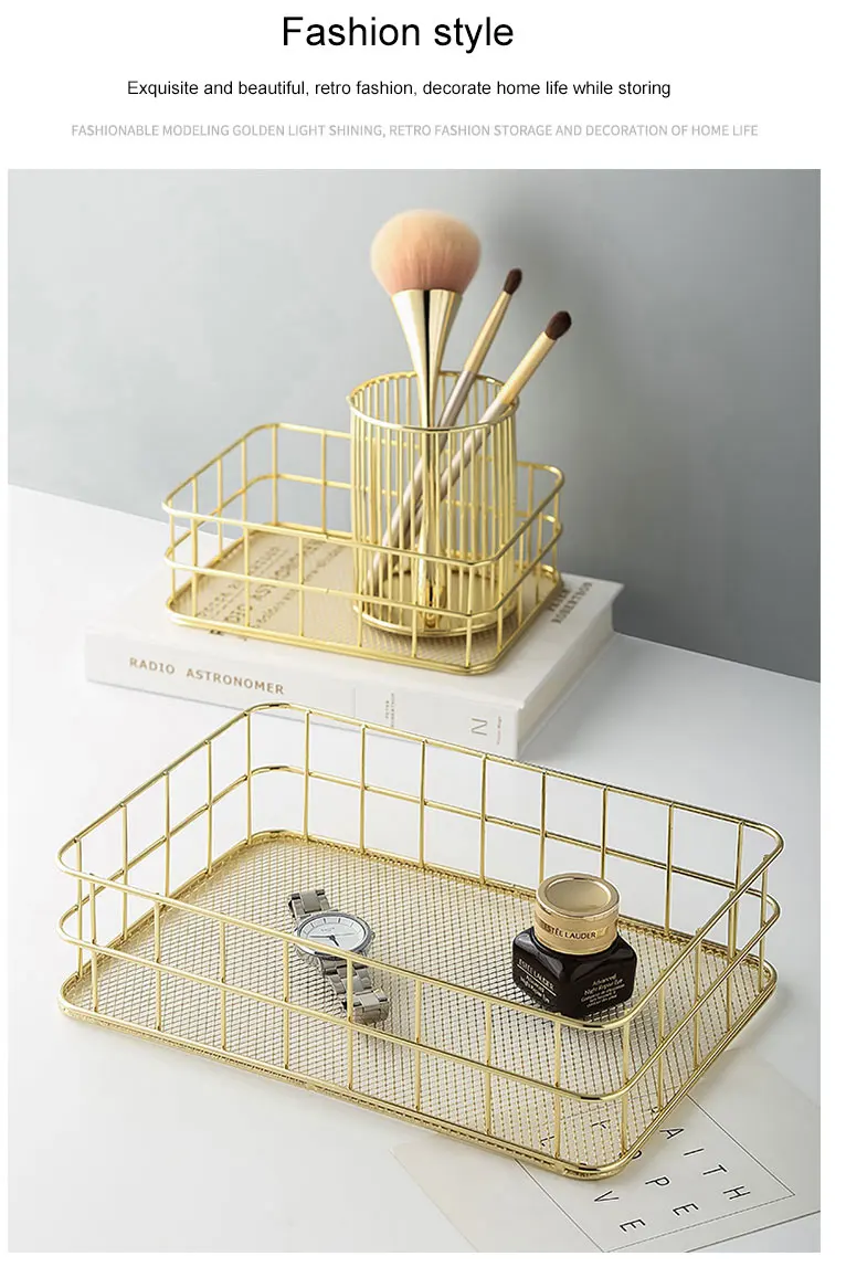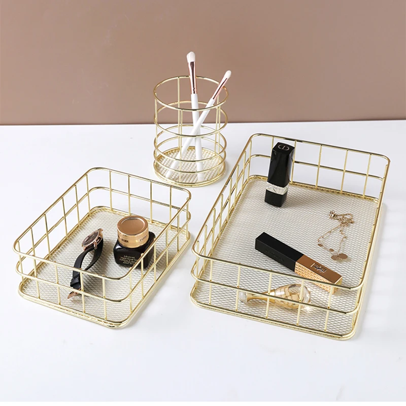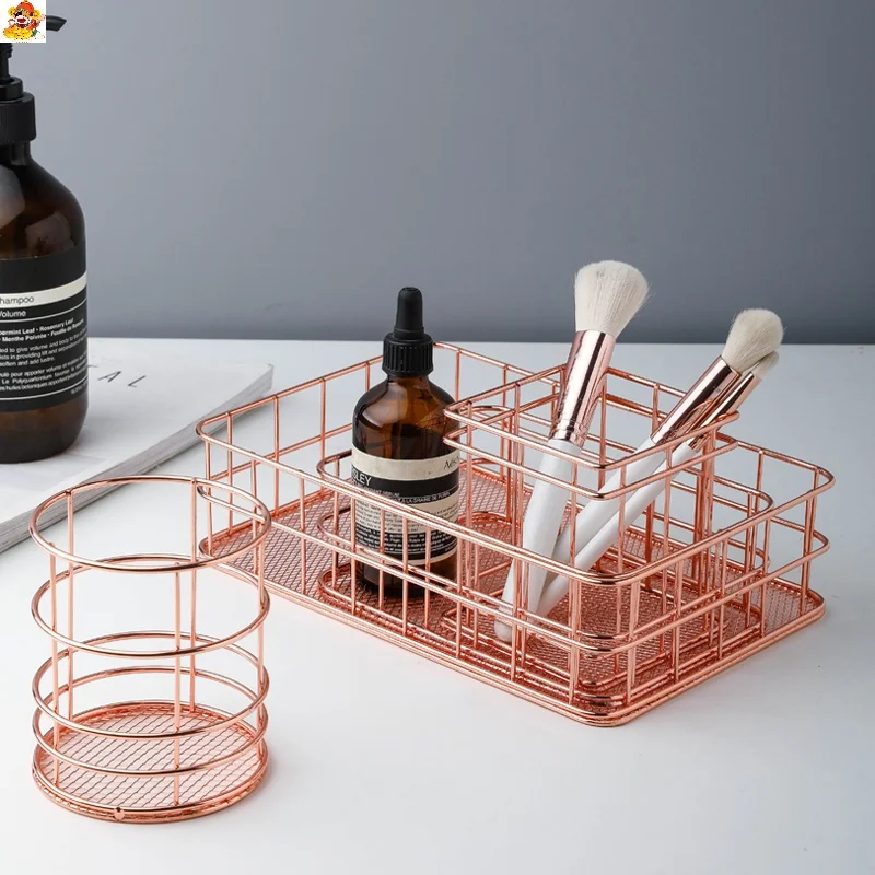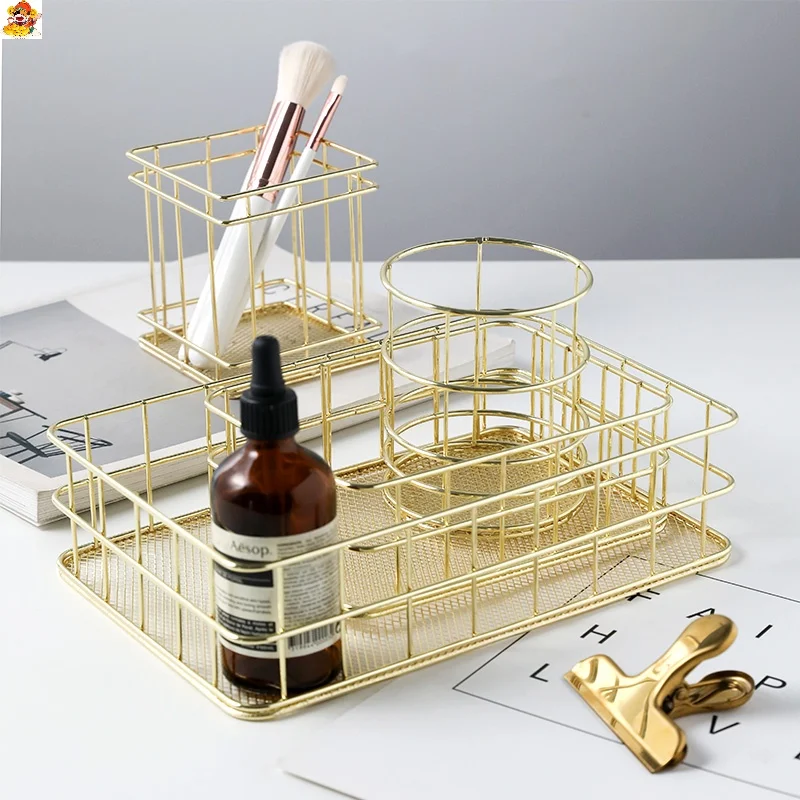 Скандинавские корзины для хранения кованого железа, настольные кисти для макияжа, держатель для ручки, настольный органайзер для косметики, контейнер, коробка
