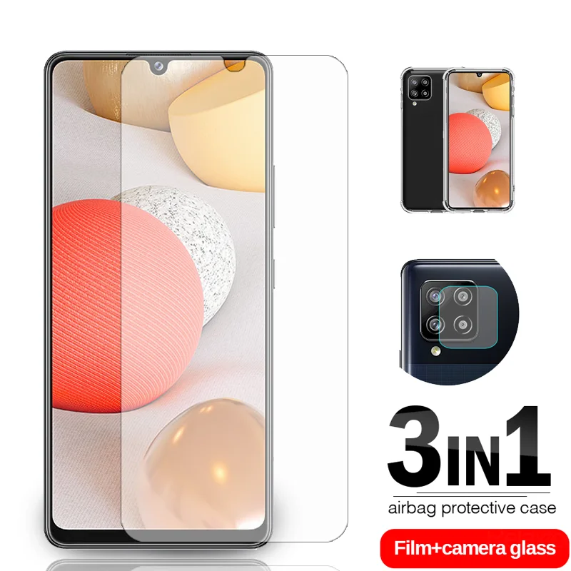 3-в-1 чехол + Мягкий объектив стекло + передний протектор экрана из закаленного стекла для Samsung Galaxy A42 5G чехол для телефона Защитная пленка для экрана на 42 5G полное покрытие