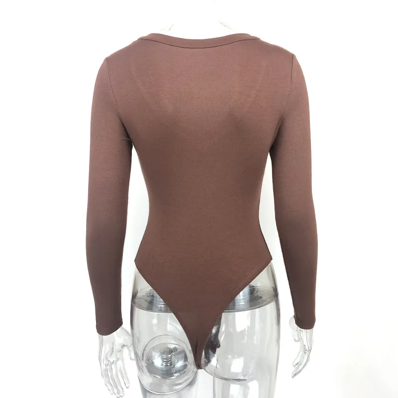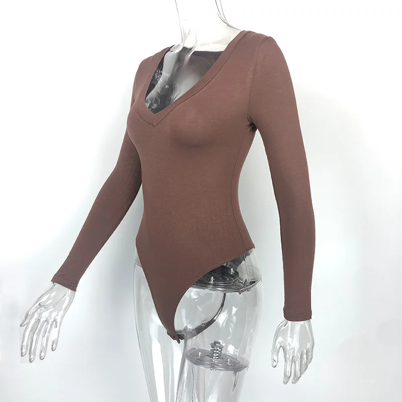 Боди женское, тонкое, мягкое, черное, белое, коричневое, с V-образным вырезом, Осень-зима, модальный длинный рукав
