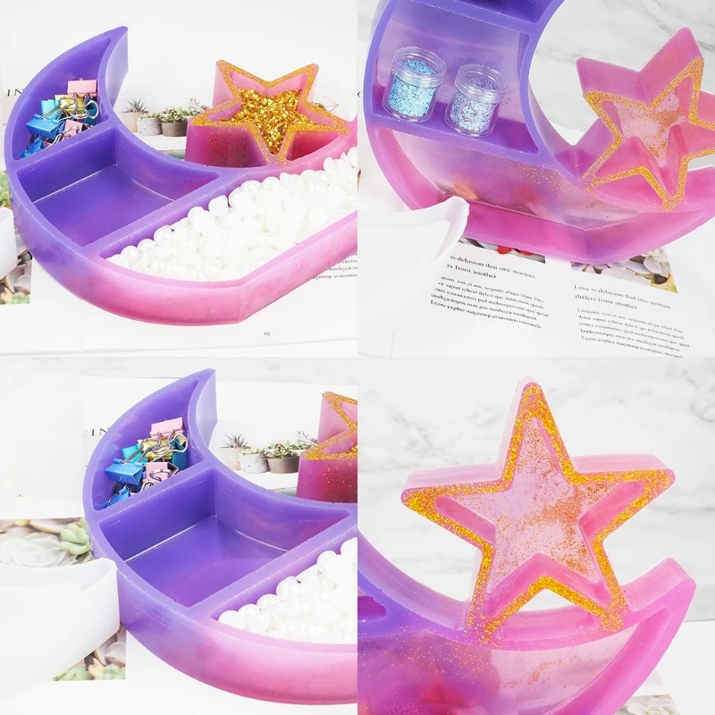 Type2Crescent Moon Tray Resin Mold Moon Star Decor Crystal Display Tray Molds Tools