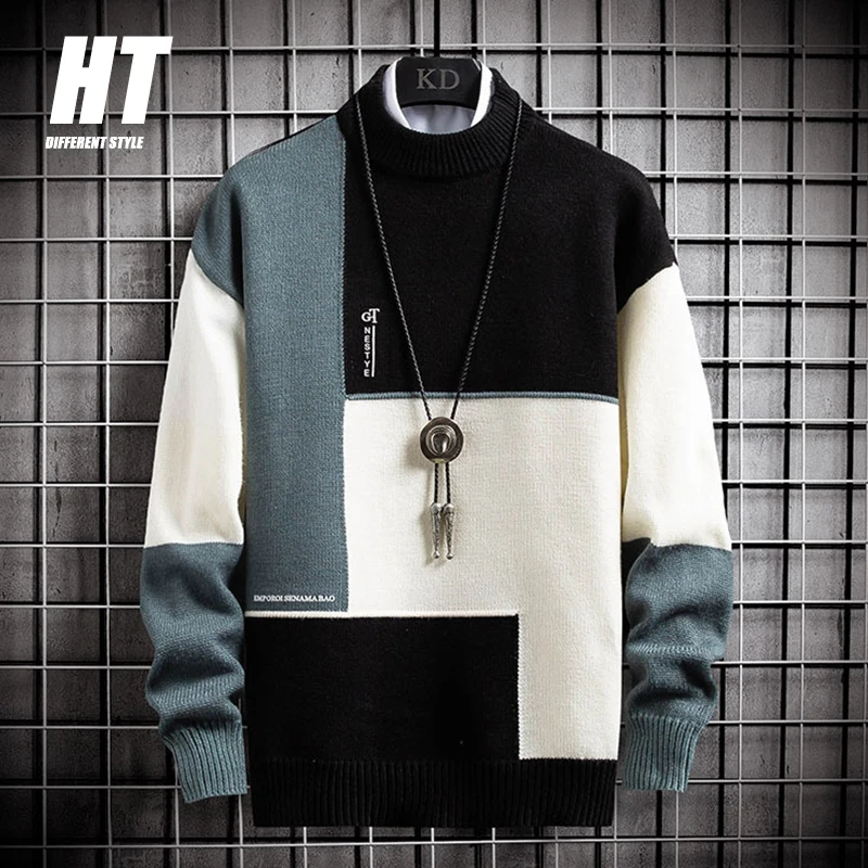 Повседневный мужской свитер с высоким воротником в стиле пэчворк приталенные свитера с круглым вырезом Новинка 2021 зимняя трикотажная одежда мужские пуловеры популярный стильный трендовый 3XL