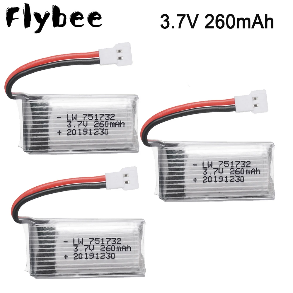 2/3/5 шт., 3,7 в, 260 мАч, 30C, литий-полимерные аккумуляторы, аккумулятор для JRC H8 Mini RC Quadcopter, аксессуары, игрушка-Дрон, запасные части