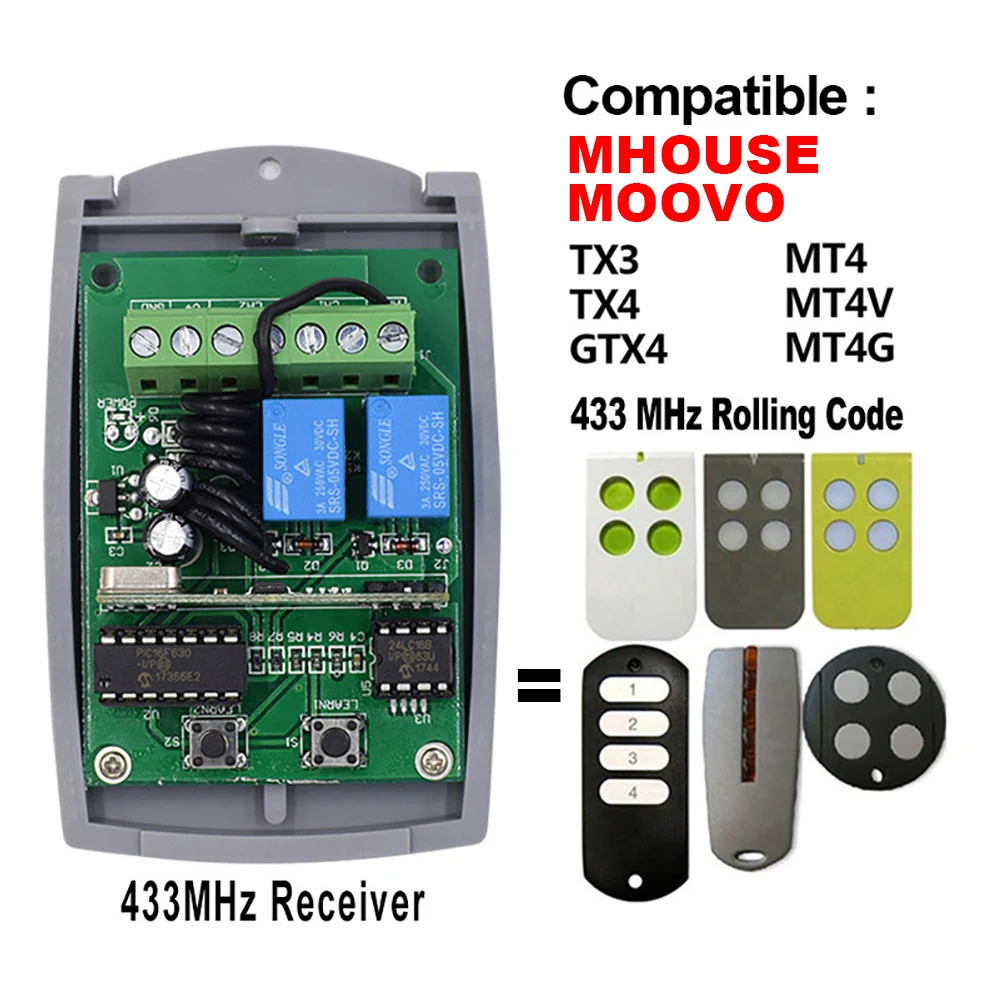 Приемник для ворот гаража MHOUSE GTX4 TX4 GTX4C 433 МГц, пульт дистанционного управления, приемник с изменяющимся кодом 2 CH 433,92 12-24 В постоянного тока, высокое качество