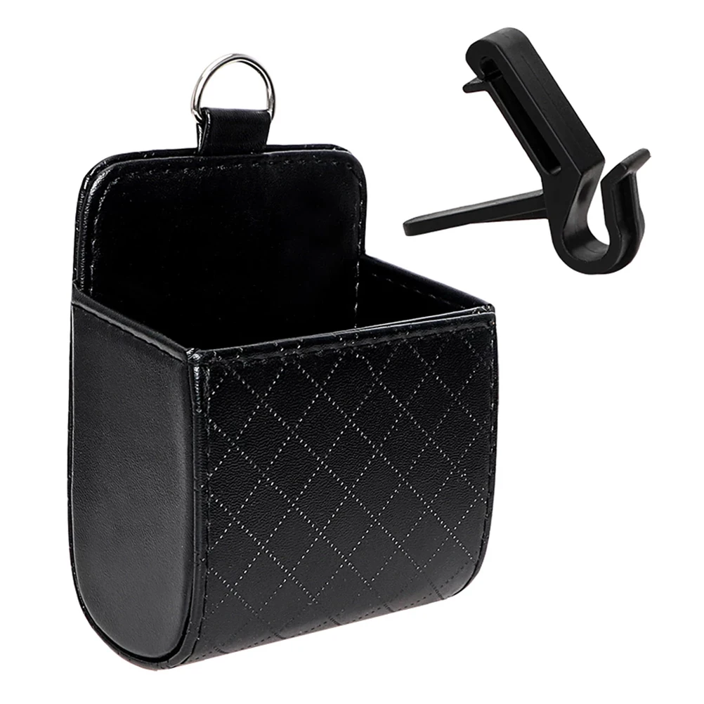 Автомобиль, устанавливаемое на вентиляционное отверстие в салоне автомобиля, сумка для хранения Авто кондиционер кожаный Органайзер для хранения всякой всячины коробка для Мобильный телефон ключ ткани с одной главной балкой с крючком