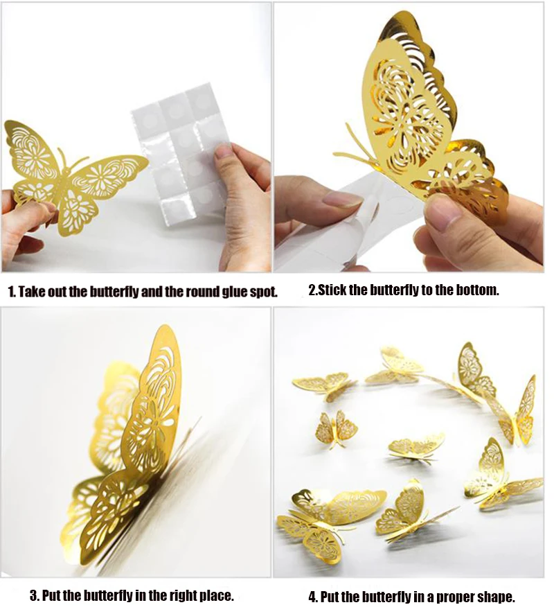 12 шт.компл. 3D полые бабочки настенные наклейки DIY украшения на о...