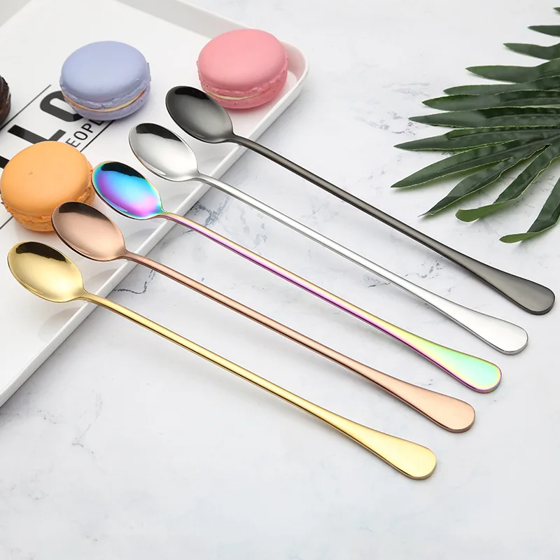 Красочная ложка для чая с длинной ручкой из высококачественной нержавеющей стали