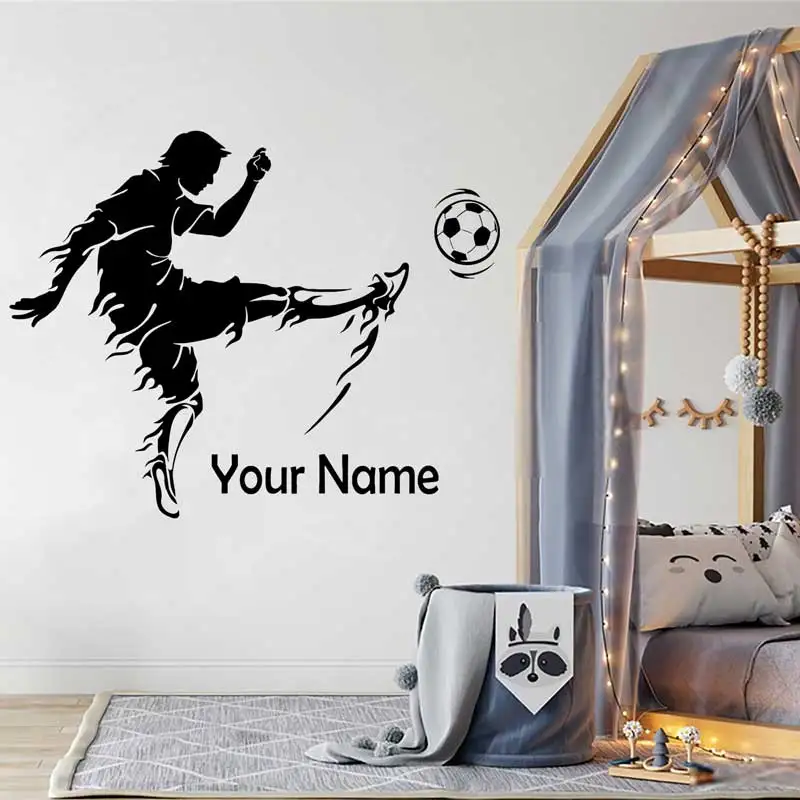 Настраиваемые футбольные настенные наклейки с именами для любителей футбола, детей, подростков, мальчиков, настенные наклейки для украшения комнаты, подарки ET1