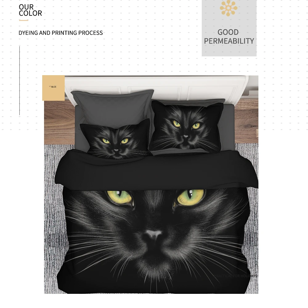 Постельное белье с 3D изображением черного кота, для взрослых и детей, 23 шт.