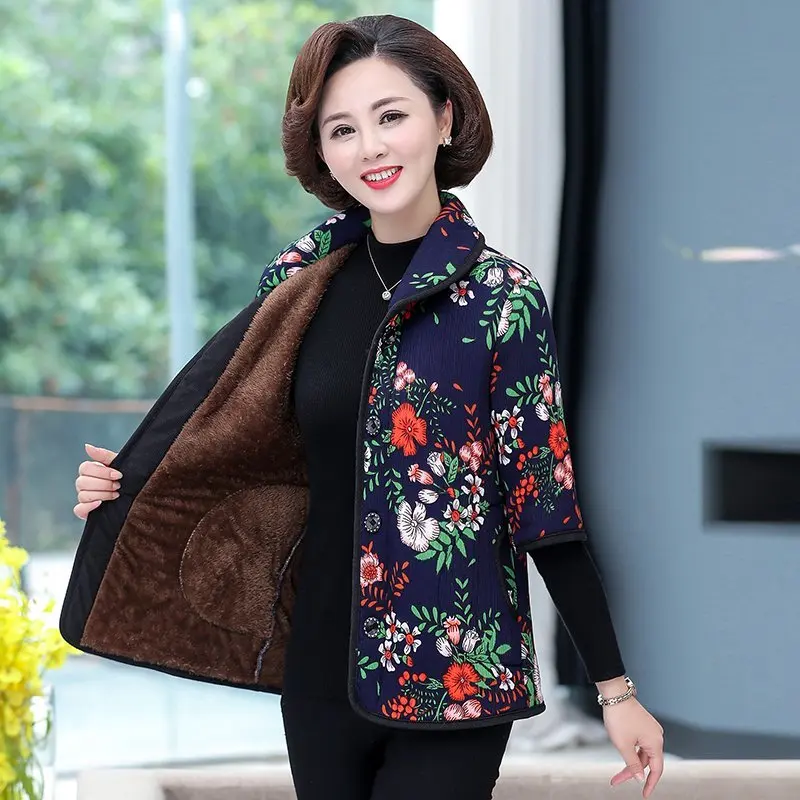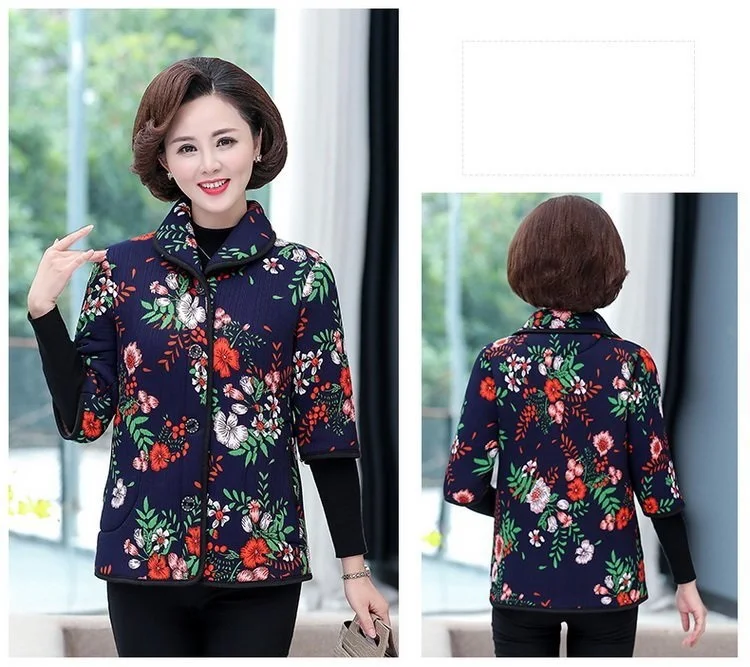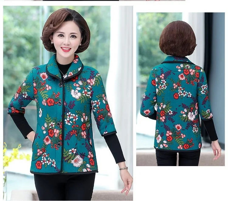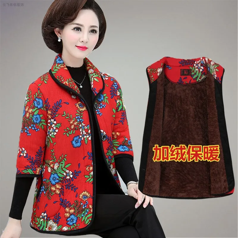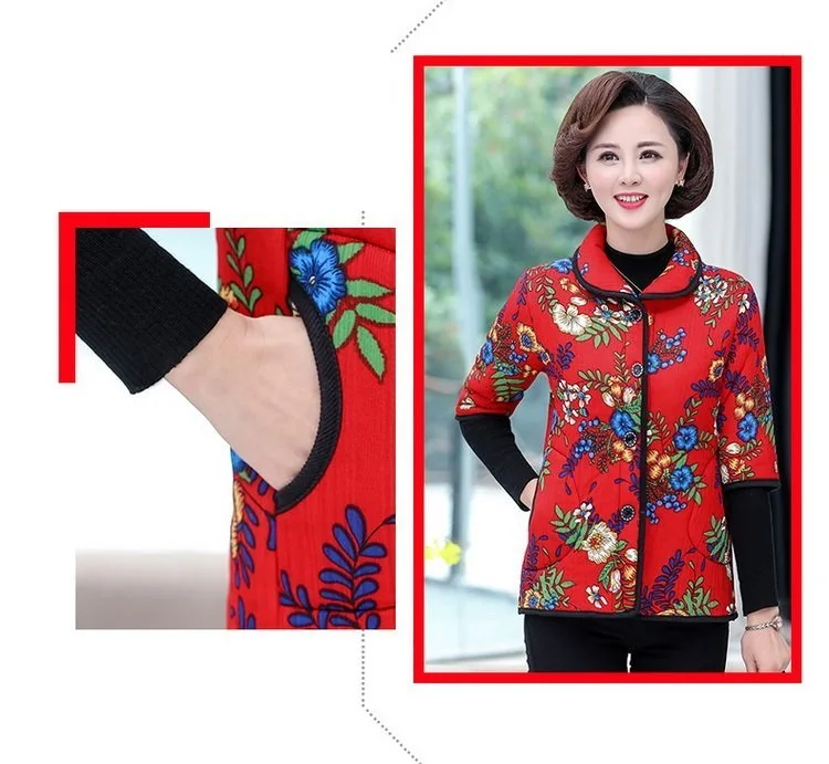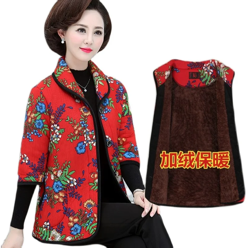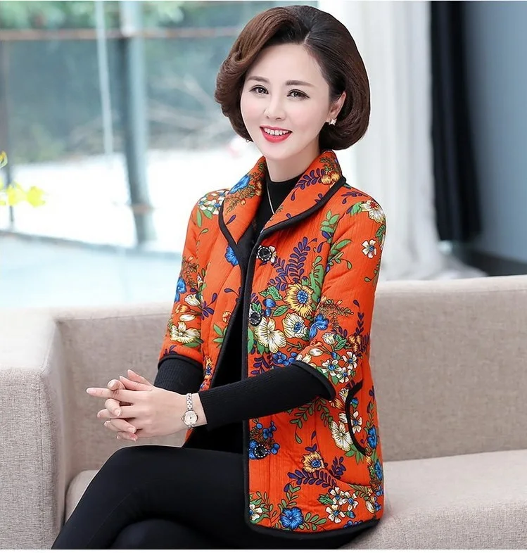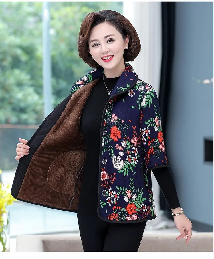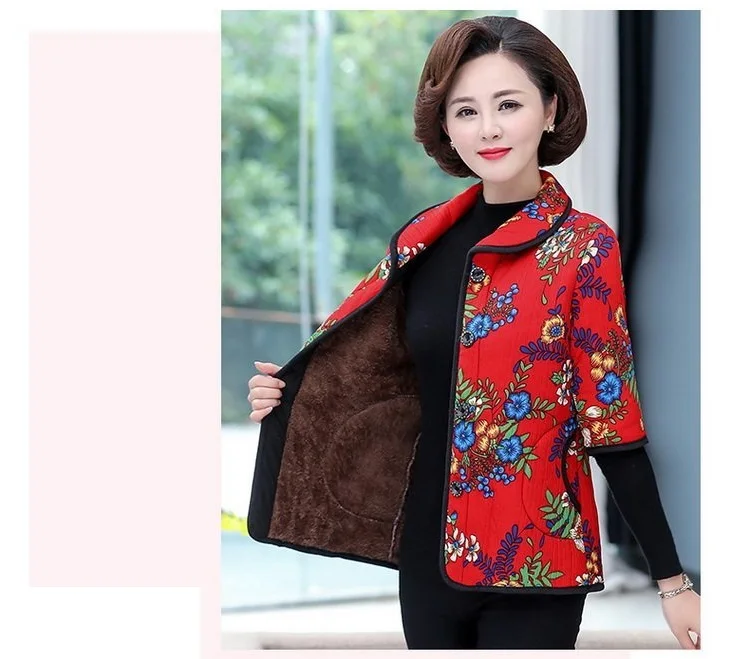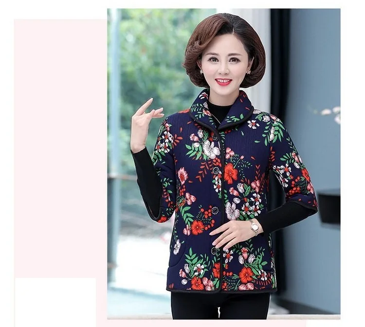 Хлопковый жилет с цветочным принтом для мамы осенняя куртка с рукавом средней длины зимняя одежда плюс вельветовое толстое пальто из хлопка размера плюс для женщин