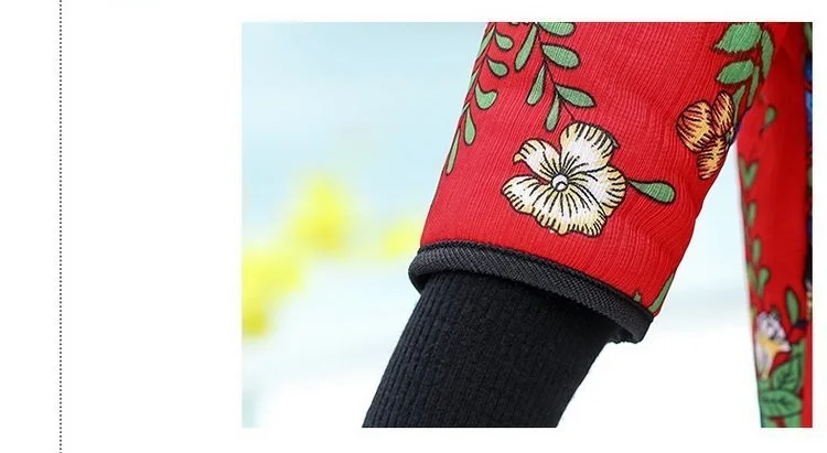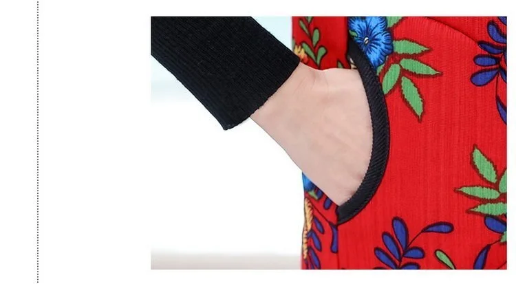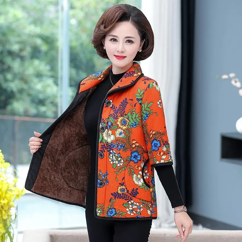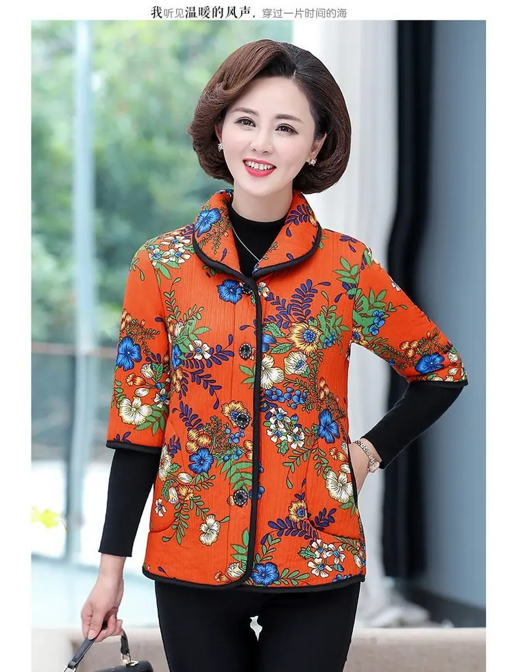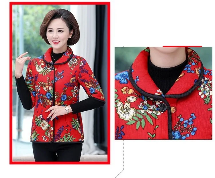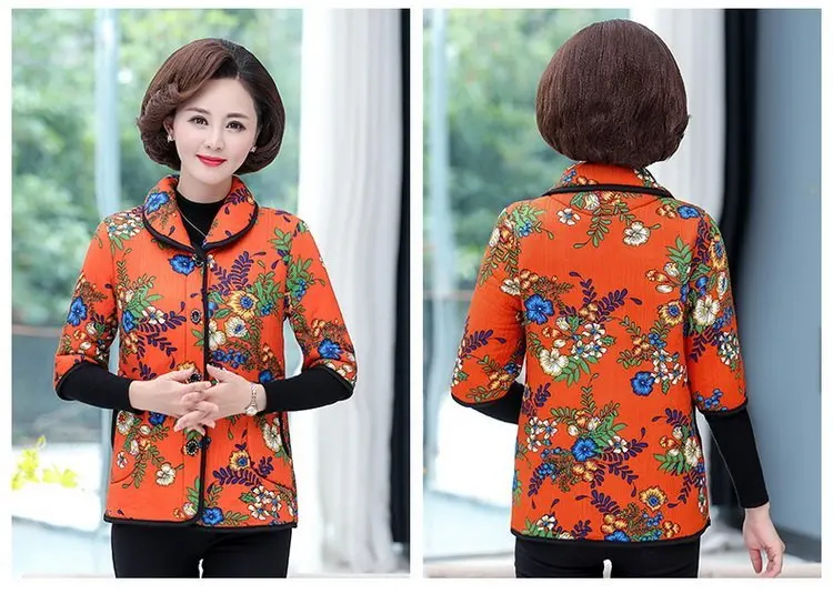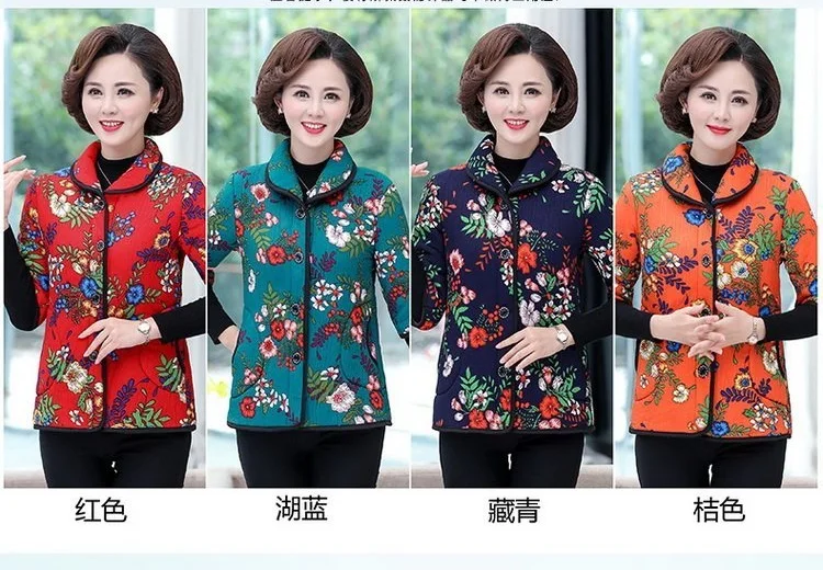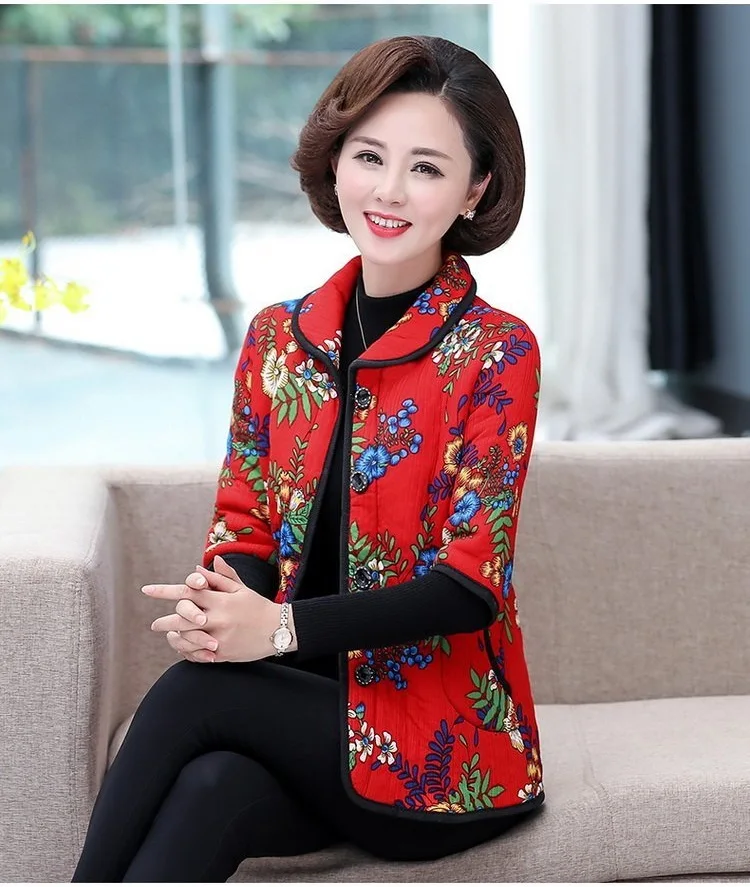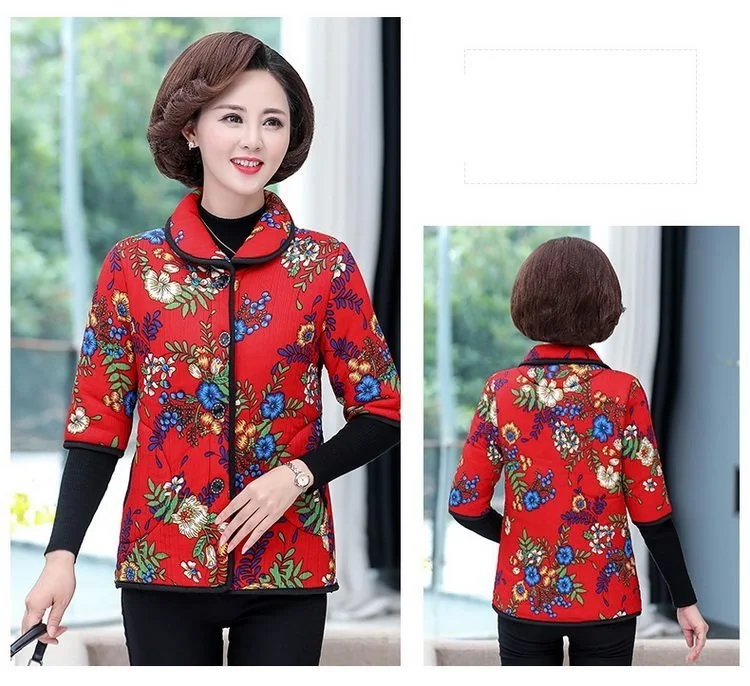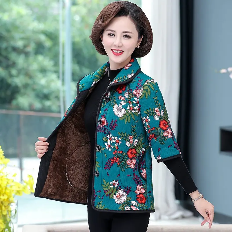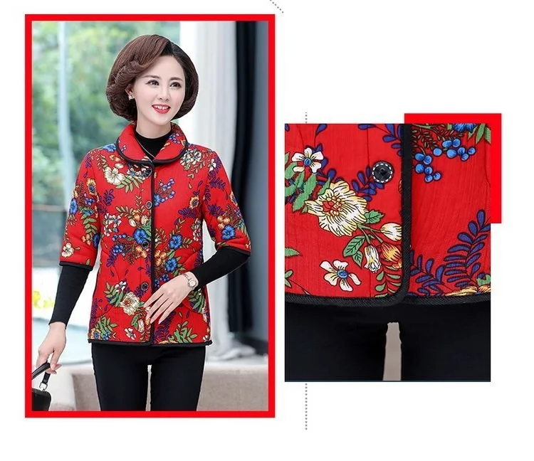 Хлопковый жилет с цветочным принтом для мамы осенняя куртка с рукавом средней длины зимняя одежда плюс вельветовое толстое пальто из хлопка размера плюс для женщин