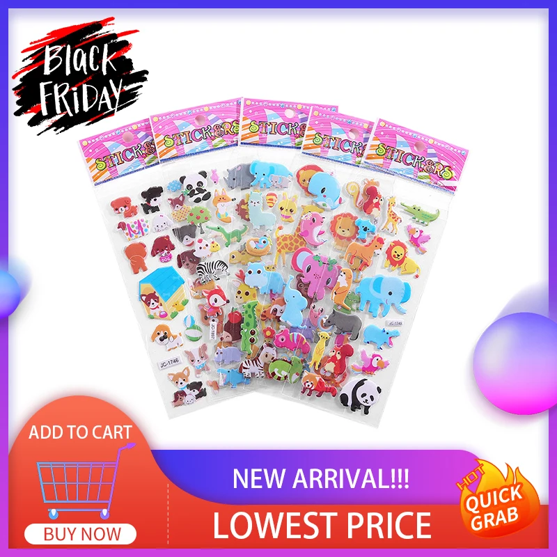 3D с рисунками зверей из мультфильмов, пузырчатые наклейки Стикеры ...