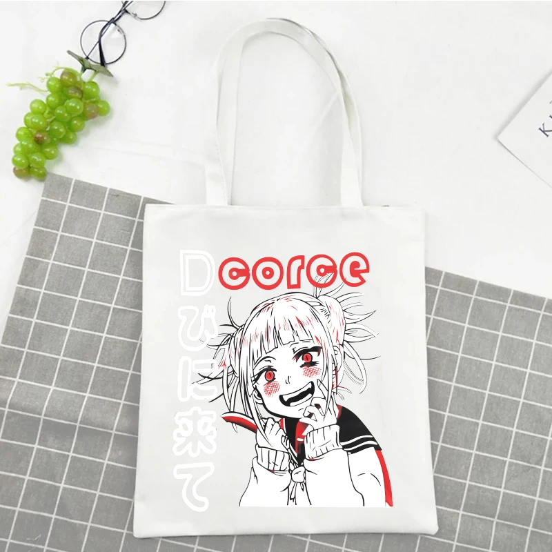 Женская Холщовая Сумка-тоут с аниме принтом, экологически чистая Сумочка для покупок с мультяшным принтом, саквояж на плечо в готическом стиле Харадзюку