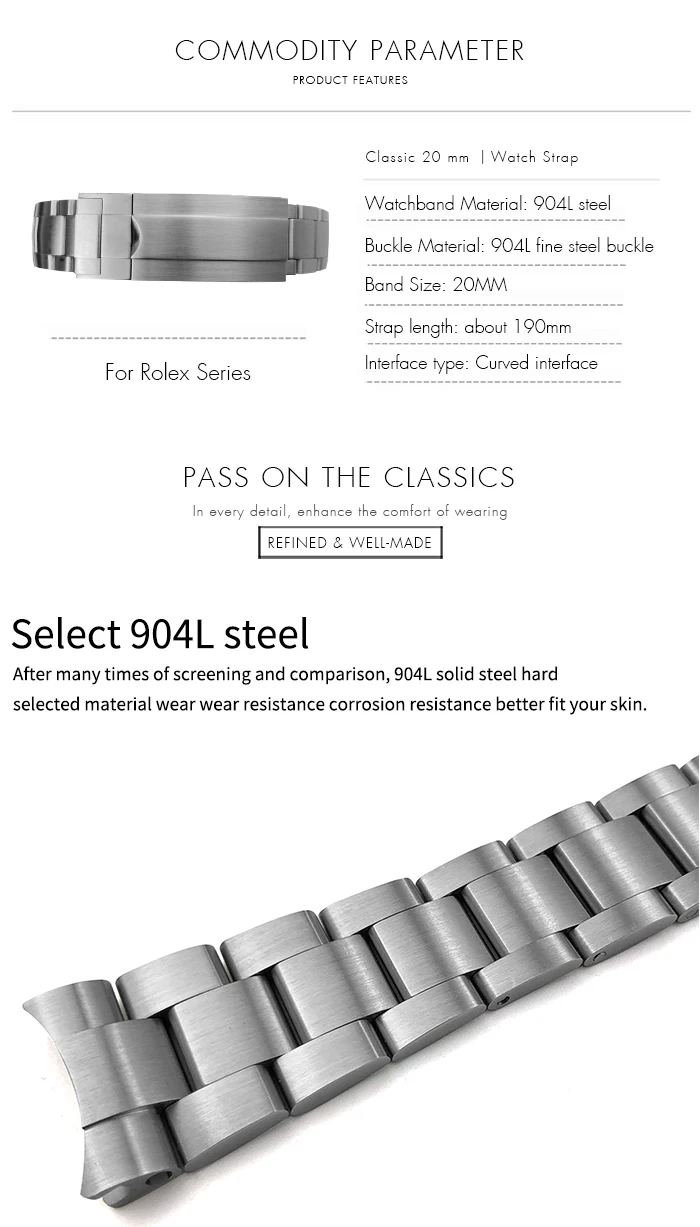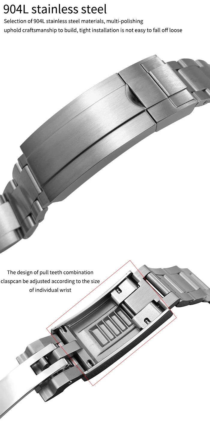 Высококачественный ремешок для часов из нержавеющей стали 904L, 20 мм, складная Пряжка, ремешок для часов Rolex Submariner OYSTERFLEX Daytona GMT, браслет