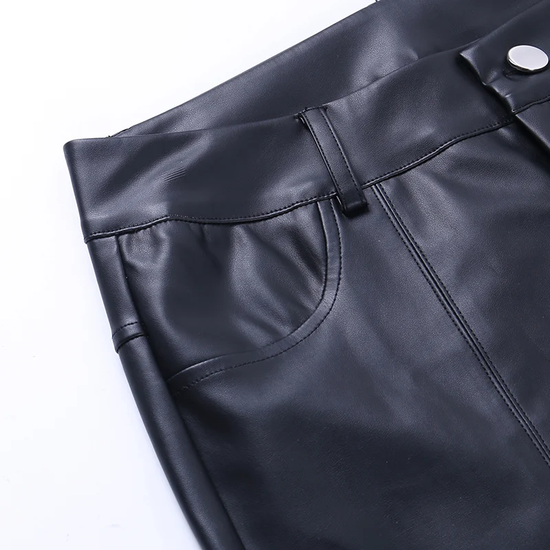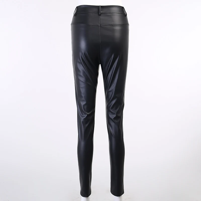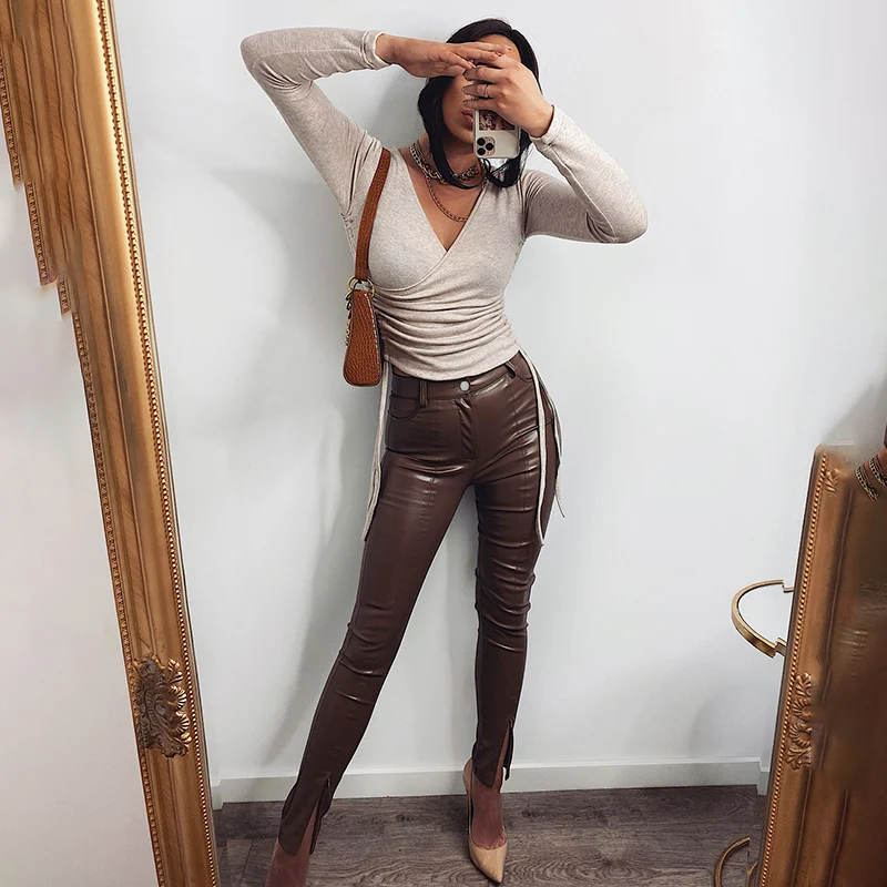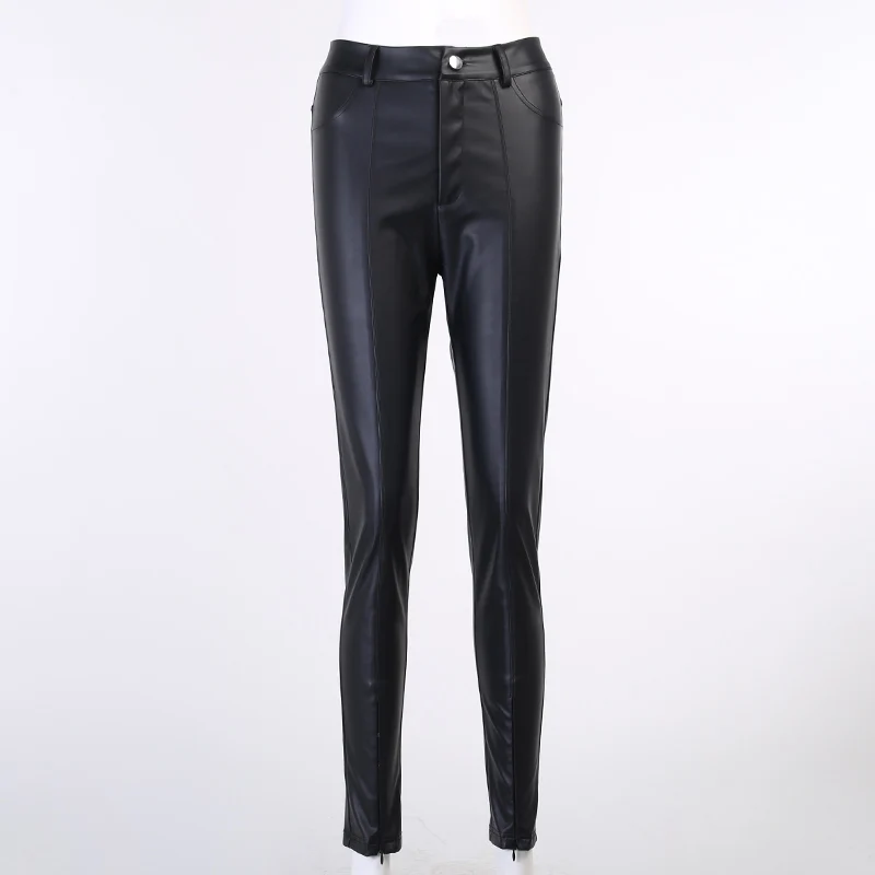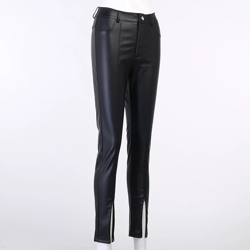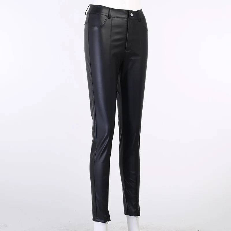 InstaHotповседневные женские брюки с высокой талией, на молнии, обтягивающие брюки из искусственной кожи, Осенние уличные женские офисные брюки