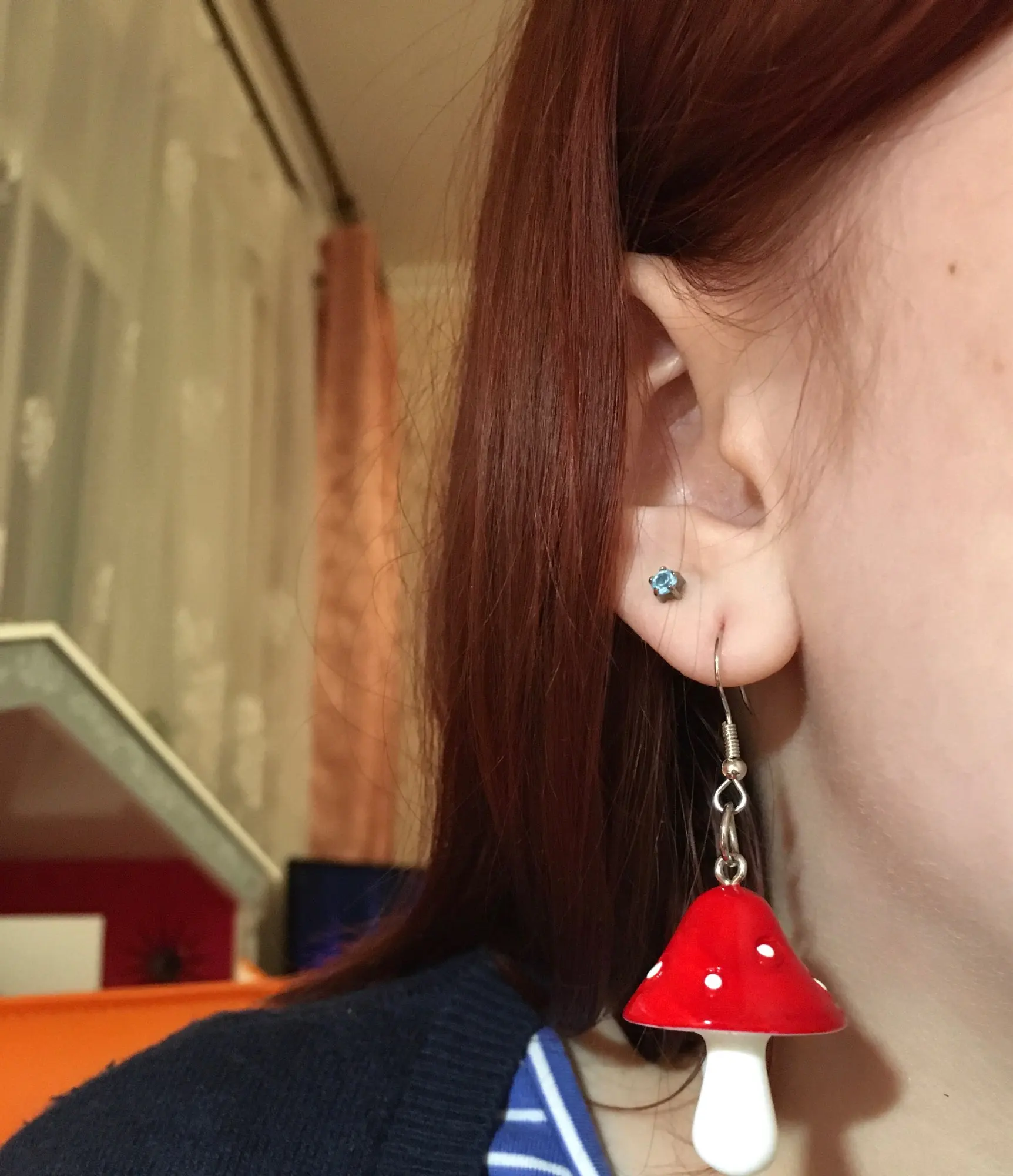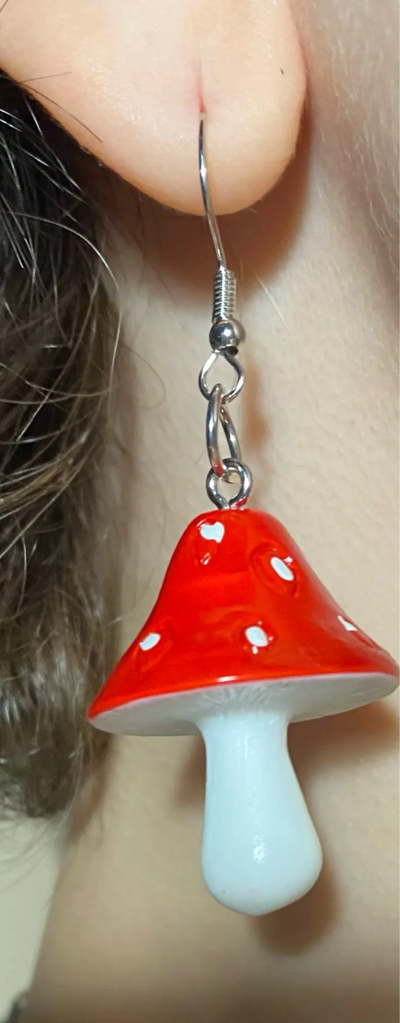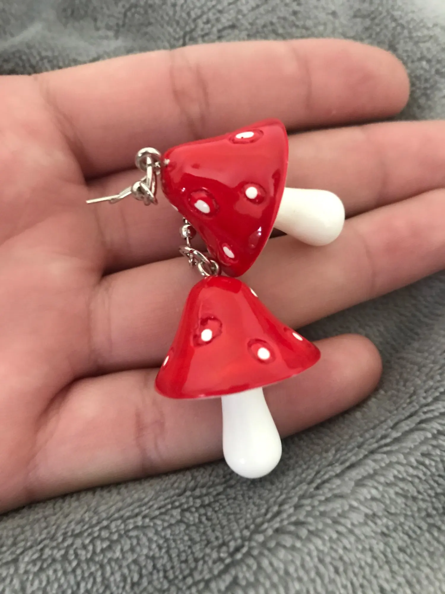 Женские длинные серьги с подвеской в виде гриба, из красного и фиолетового металла, 2020