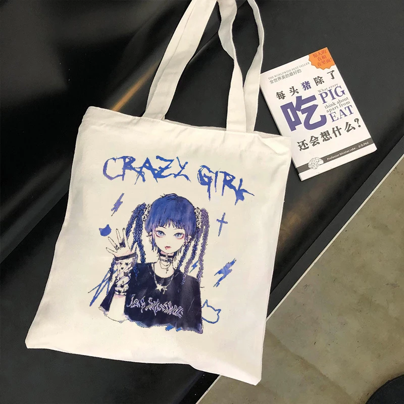 Женская Холщовая Сумка-тоут с аниме принтом, экологически чистая Су...