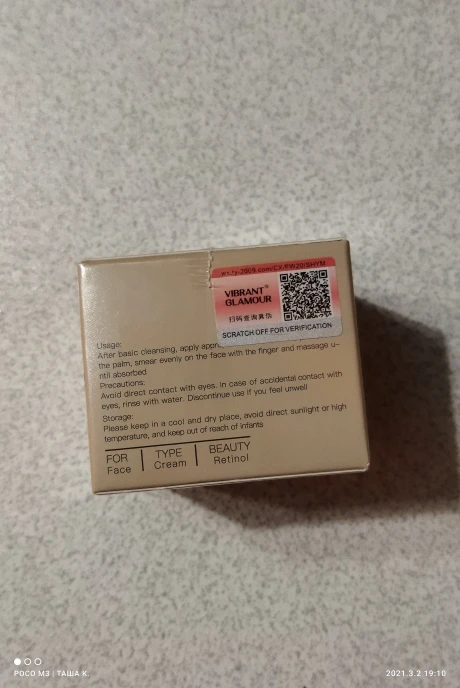 Страна: RU Color: Retinol Face Cream Ships From: China Доставка: Cainiao Standard For Special Goods 08.03.2021