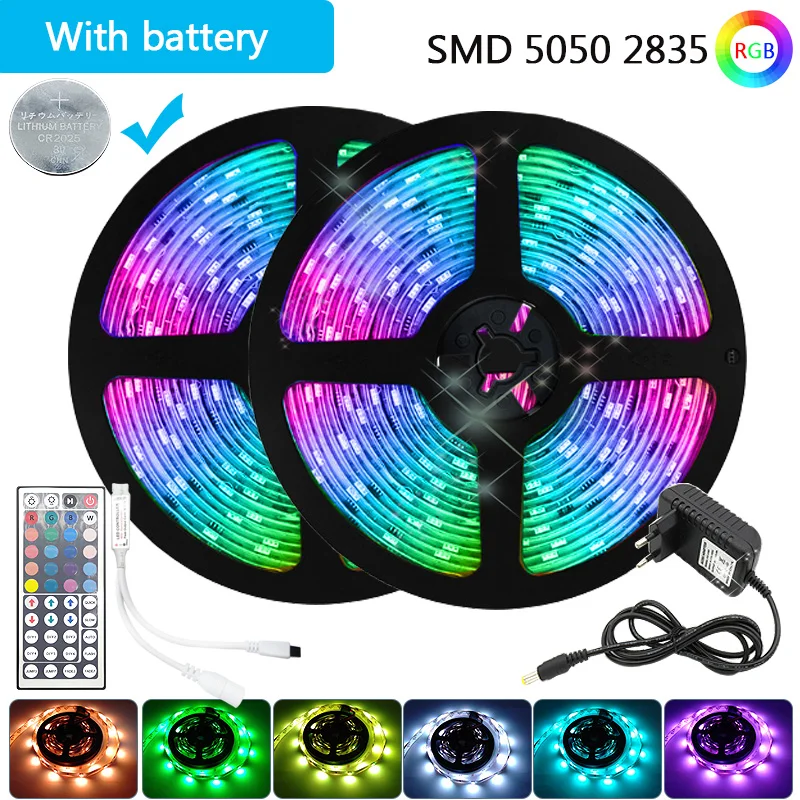 Светодиодная лента RGB 5050, 5 м, 10 м, 15 м, SMD 2835, водонепроницаемая лента, ИК-пульт дистанционного управления с батареями, 12 В постоянного тока, лента с диодами для рождества, Хэллоуина