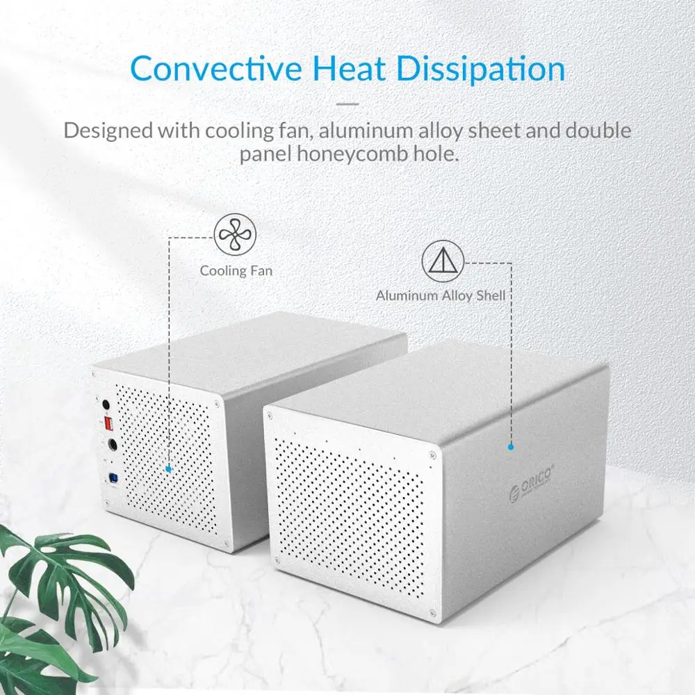 ORICO 32-80 ТБ Multi Bay 3,5 ''алюминиевая док-станция для жесткого диска SATA до USB3.0 корпус для жесткого диска сотовое охлаждение с 7 режимом Raid