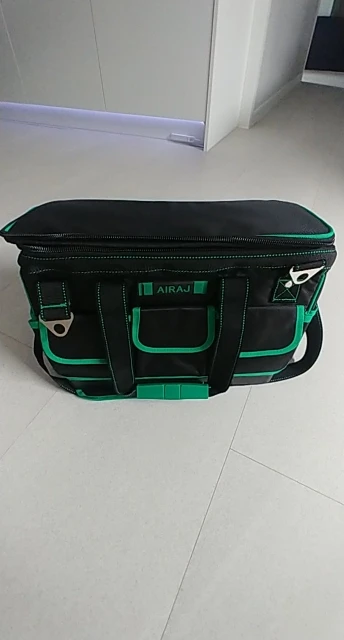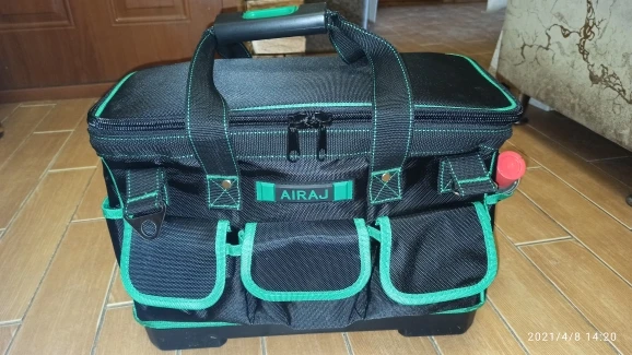 Отличная сумка. Но для меня есть два минуса. 1. Не глубокие карманы, связано это с тем, что у сумки пластиковое дно и борты дна не позволяют сделать карманы глубже. 2. Нет раздельных карманов для отверток, как было в моей предыдущей сумке. По габаритам то что мне нужно. Швы ровные, ручки пришиты отлично, но время покажет как сумка себя зарекомендует. В комплекте была маленькая коробочка для метизов. Однозначно рекомендую к покупке. Доставка до Минска 29 дней.