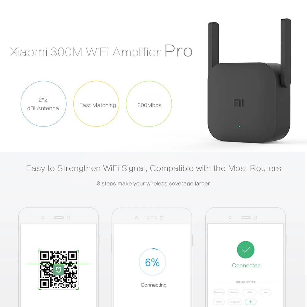 Оригинальный Xiaomi Pro 300 Мбит/с WiFi расширитель диапазона Особенности: Совместимость с:Большинство маршрутизаторов. Простое подключение:Для подключения всего 3 шага.