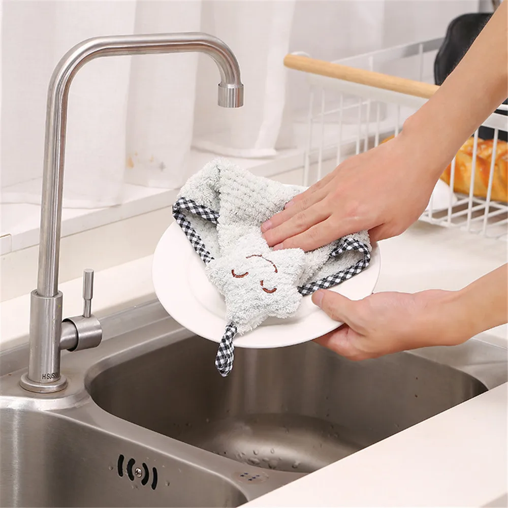 1 шт. ручной Полотенца s впитывающий коралловый флис ткань Кухня Полотенца легко чистить с милыми животными, Кухня Ванная комната висит протрите Полотенца
